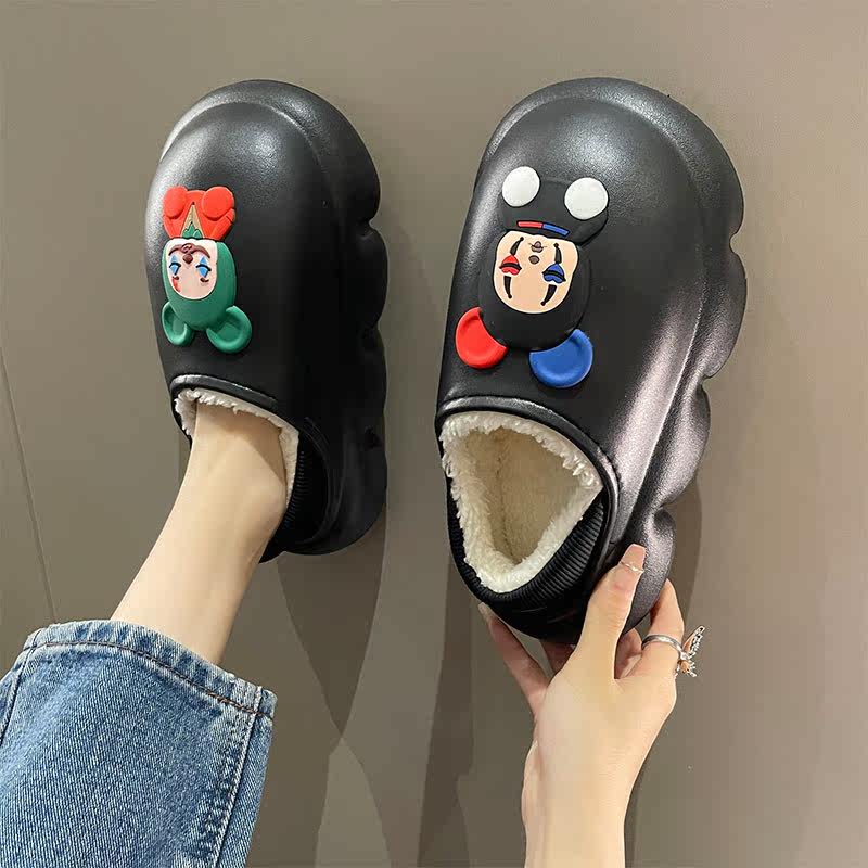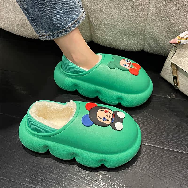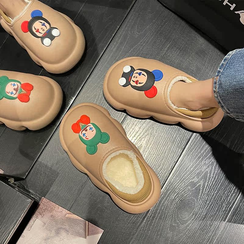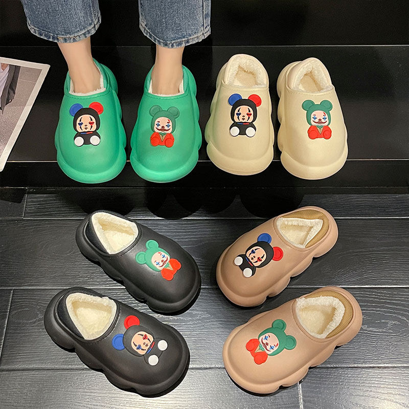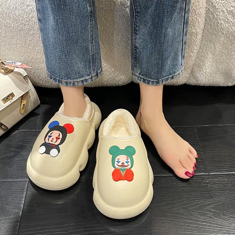 Мультяшные милые высокие тапочки, демисезонная флисовая обувь на платформе