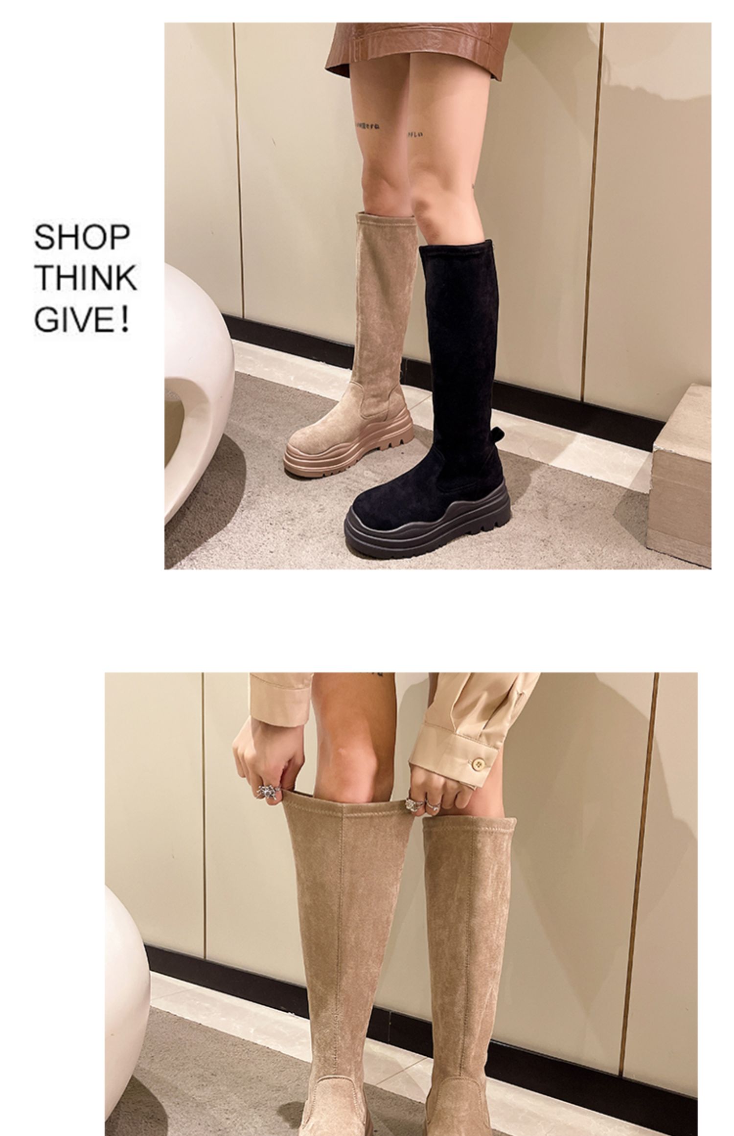 Демисезонные утепленные высокие эластичные высокие сапоги на платформе, подходит для подростков, коллекция 2022, по фигуре