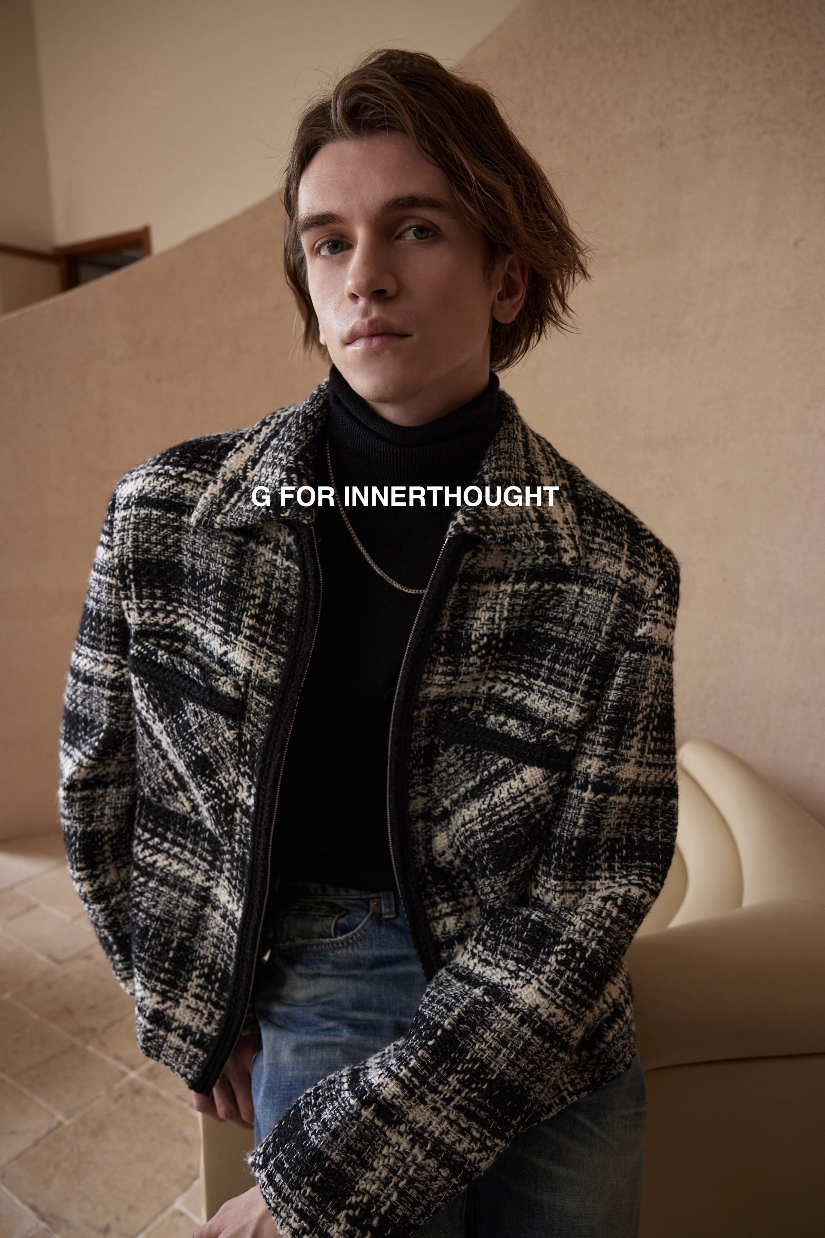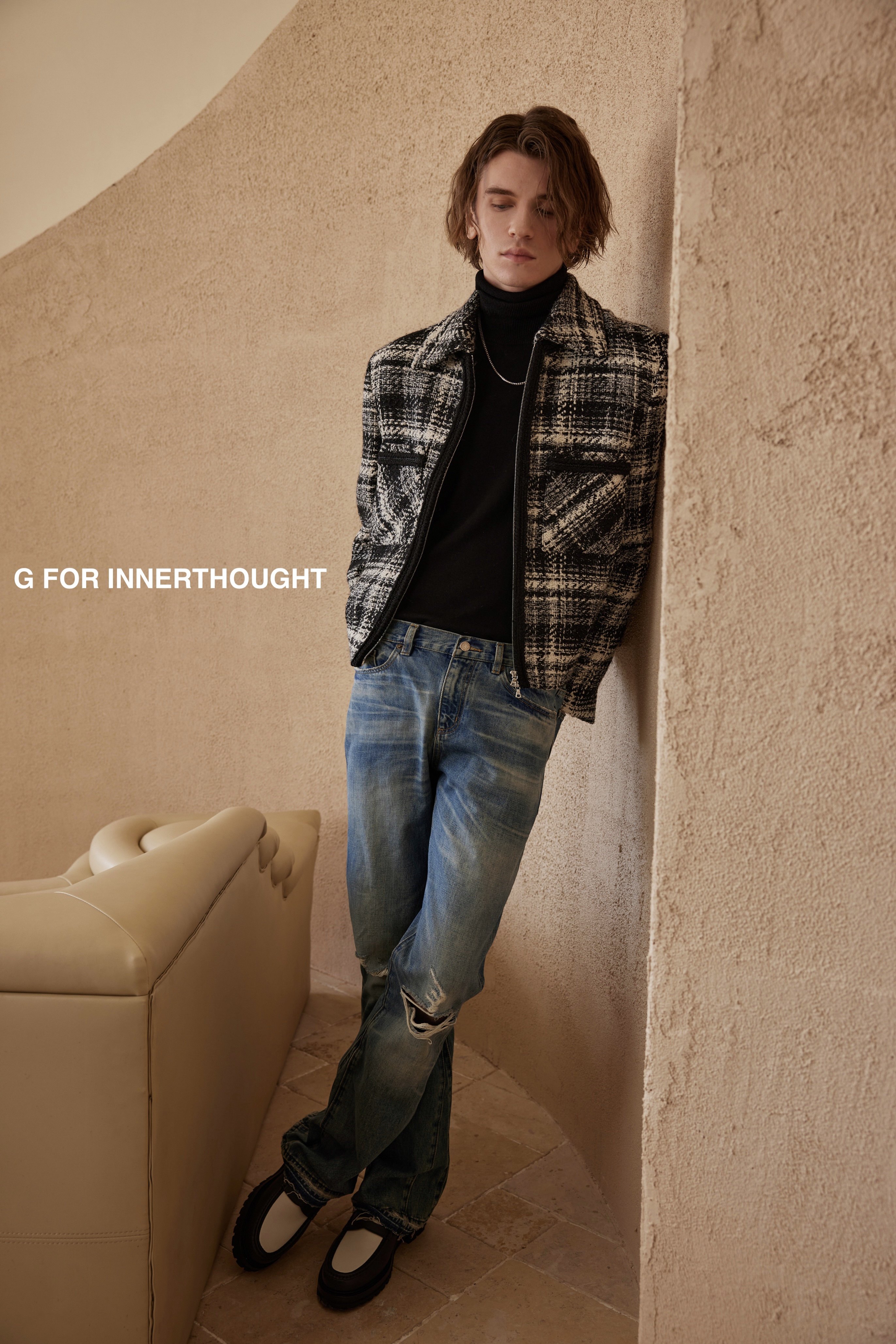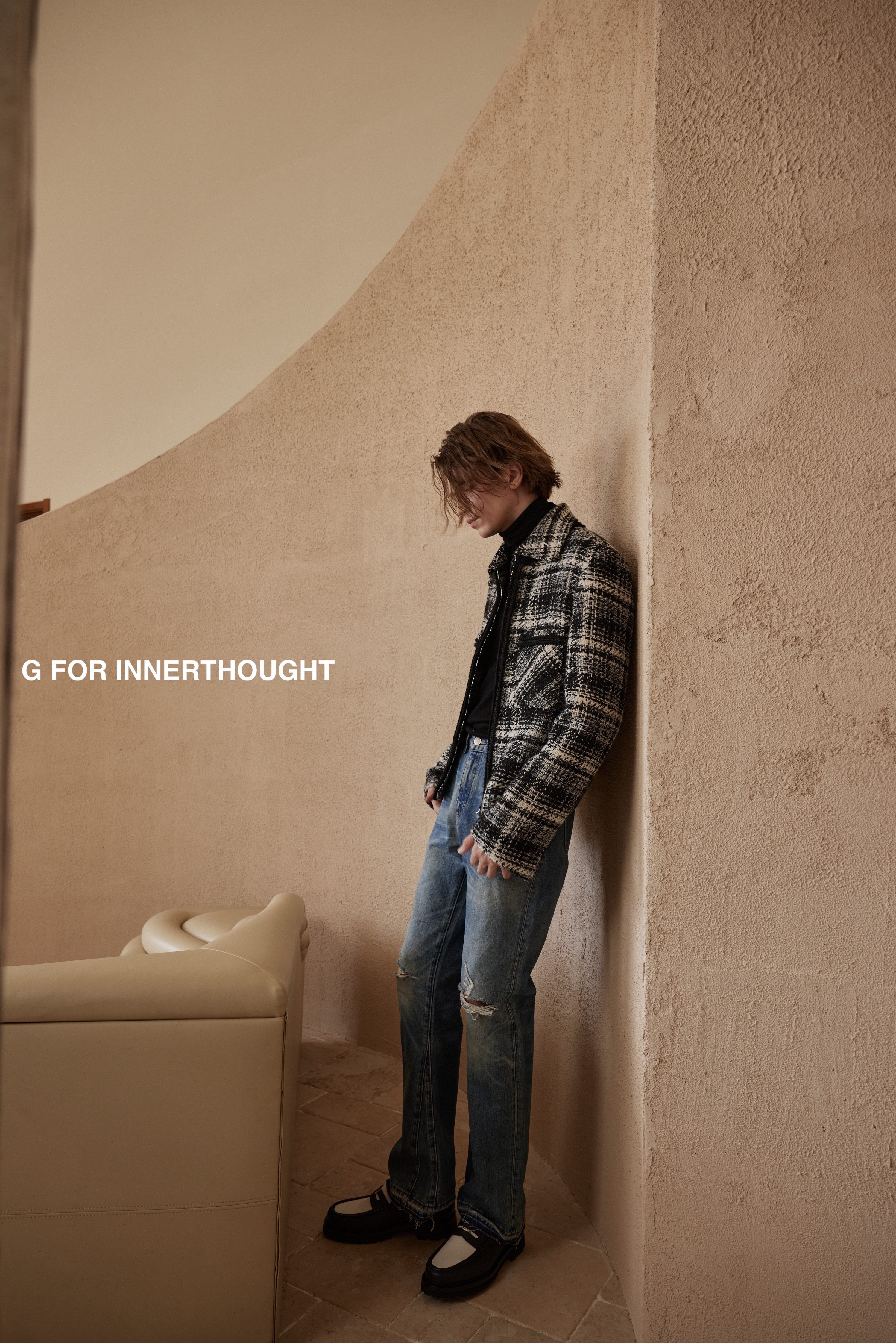 G для Innery | Японская шерстяная смешанная грубая цветочная сплетен