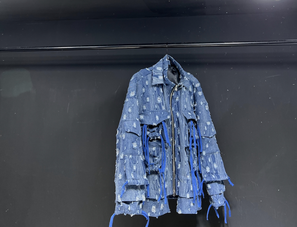 - Темно-синяя рваная джинсовая куртка