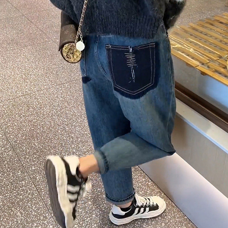 Осенние джинсы, флисовые штаны, коллекция 2023, оверсайз, высокая талия, большой размер