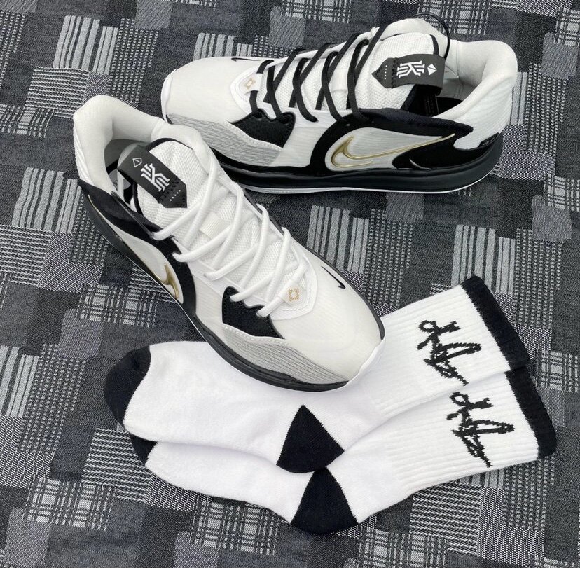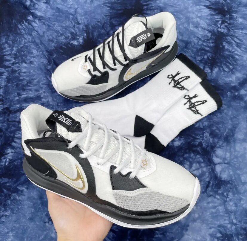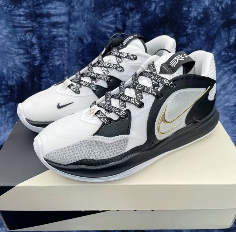 Адаптированная Kyrie Low 5 Ep Emeen 5 белая черная элл -эллиптическая обувь ремень Серебряный серебряный цветок цветочный цветок цветочный цветок.