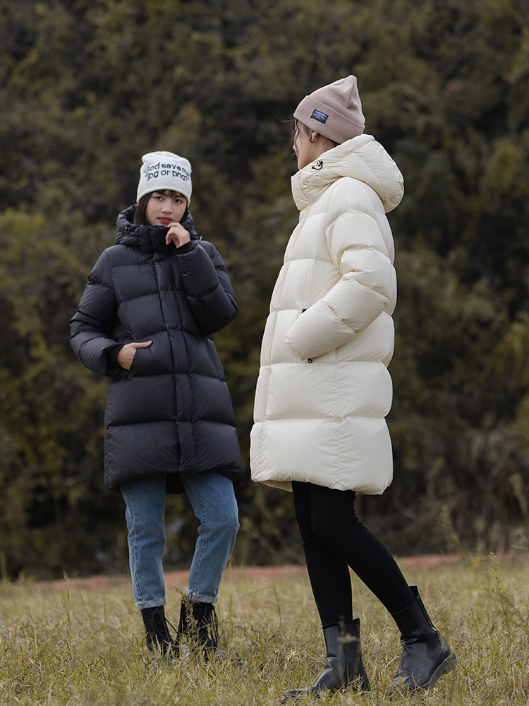 Зимний черный белый бархатный пуховик, средней длины, увеличенная толщина, 300 грамм, гусиный пух
