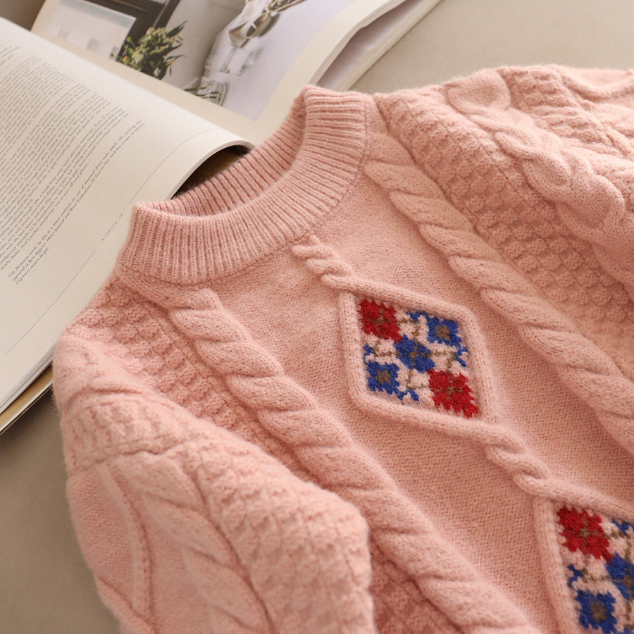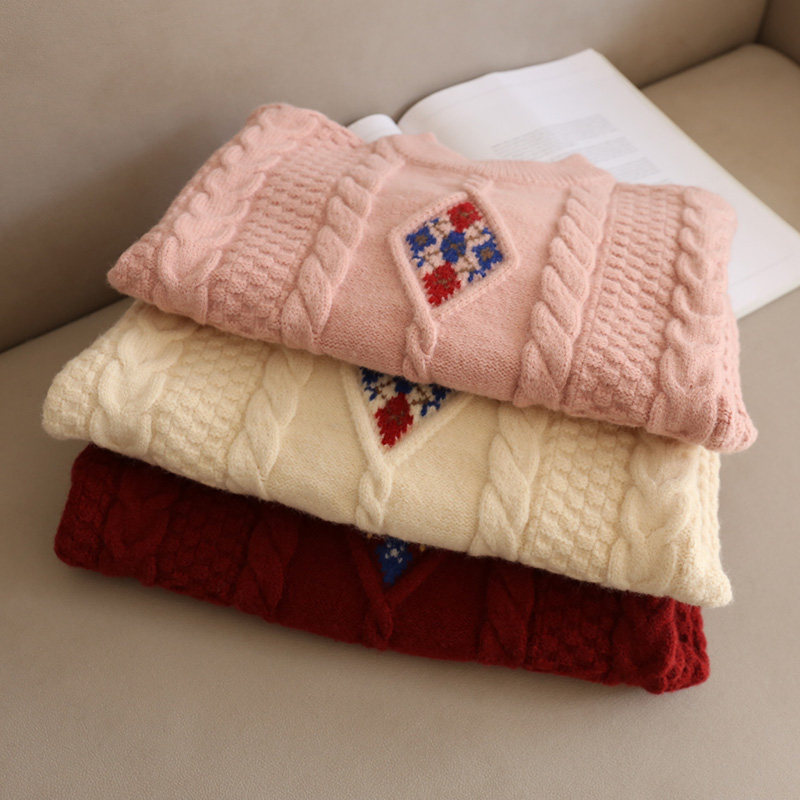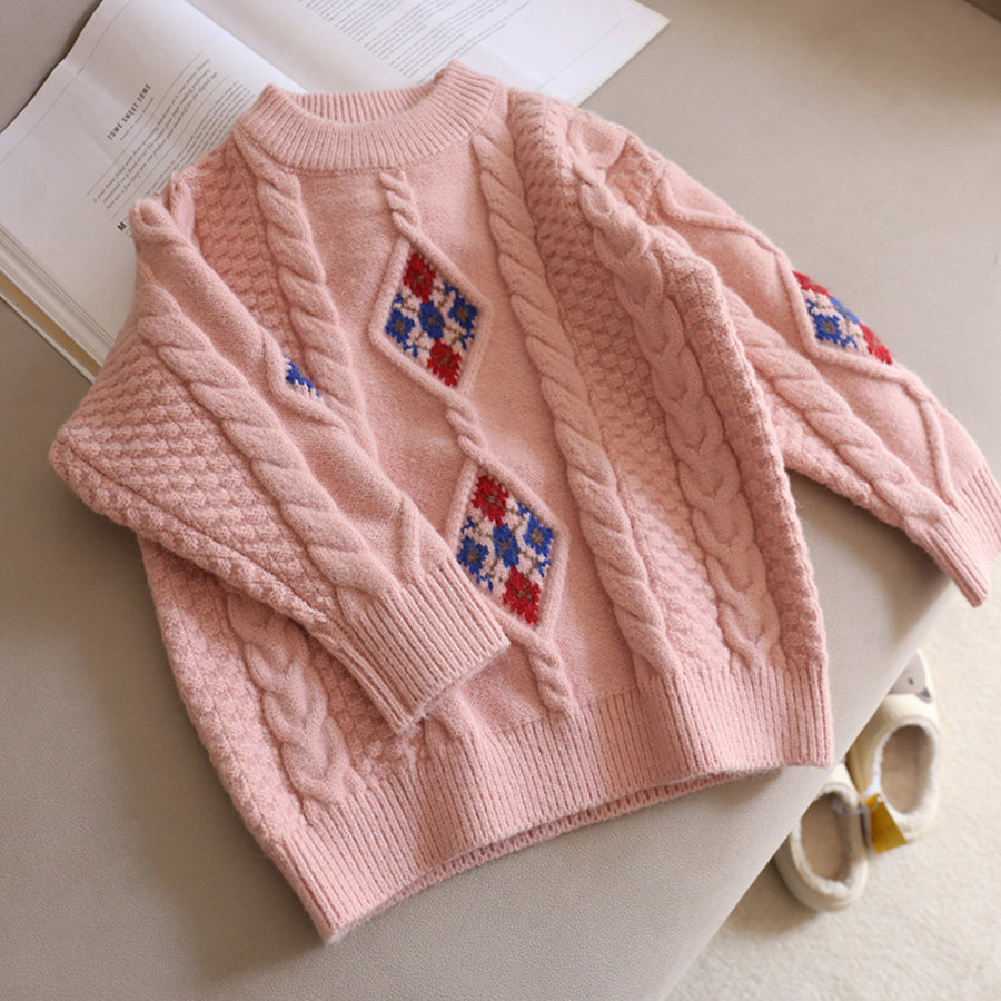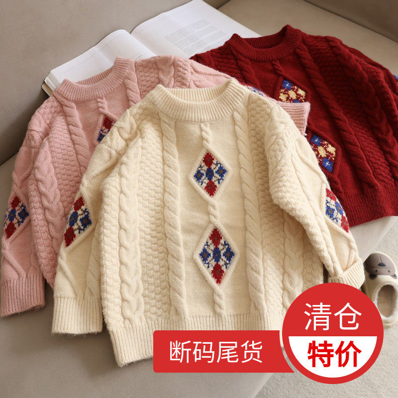 110-130 [Нет возвращения или обмена] Модный свитер для девочек зимний тепло, утолщенный теплый пуловер