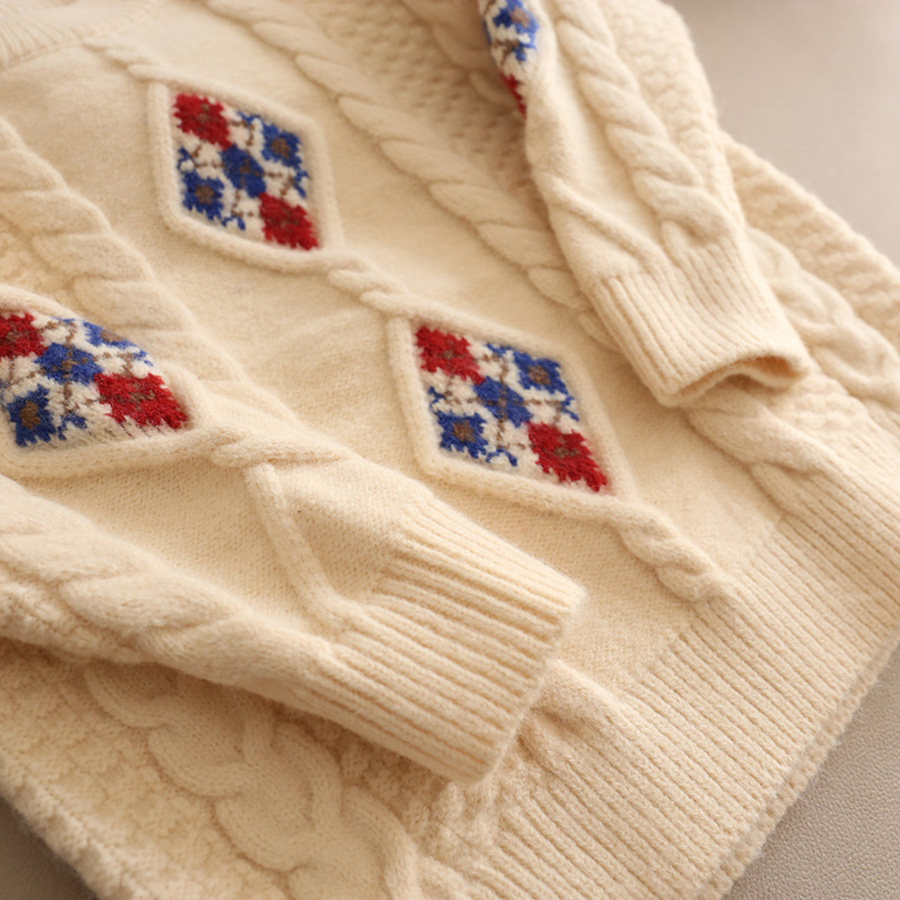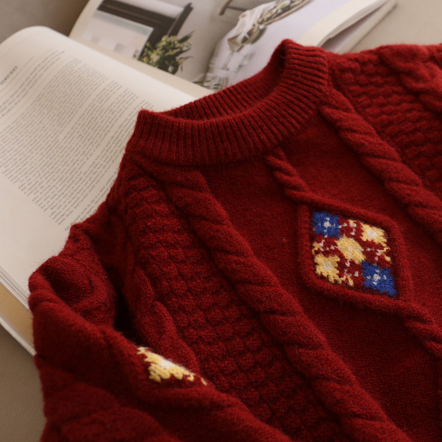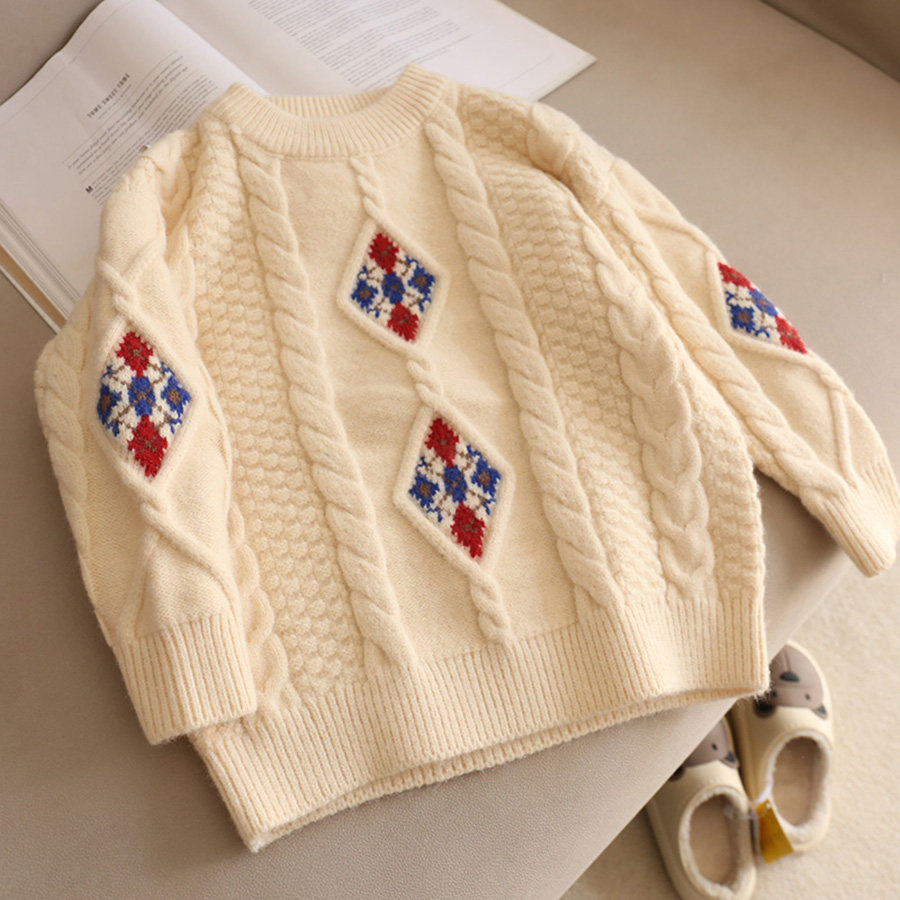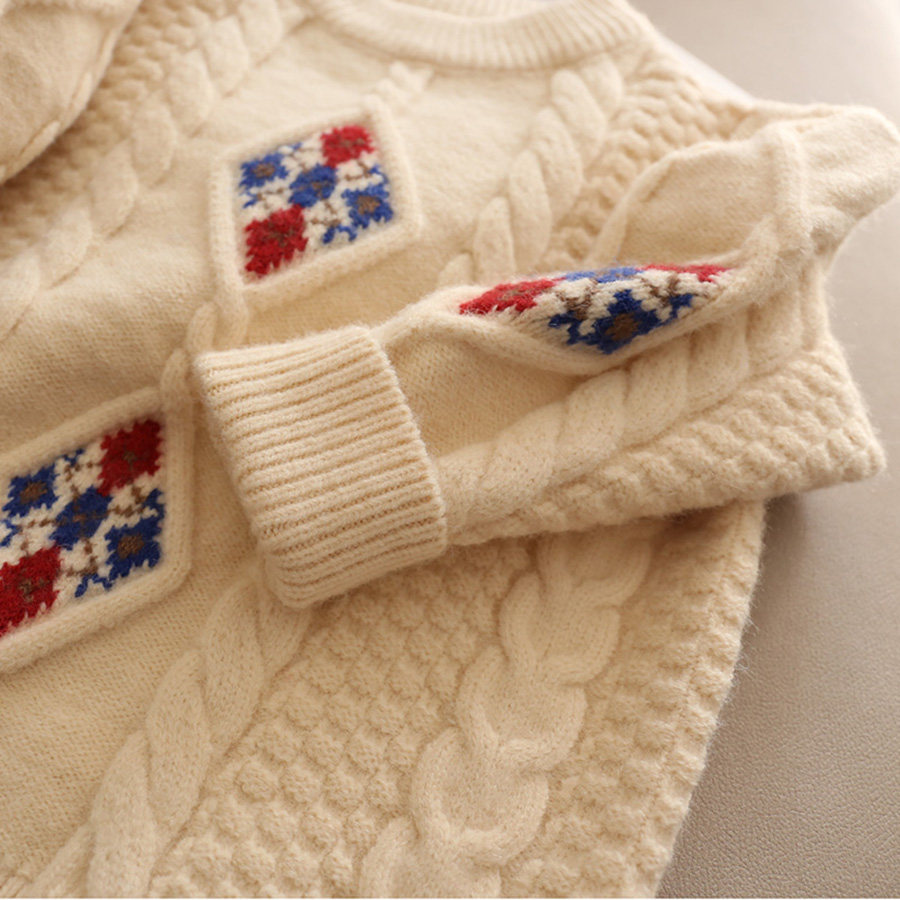 110-130 [Нет возвращения или обмена] Модный свитер для девочек зимний тепло, утолщенный теплый пуловер