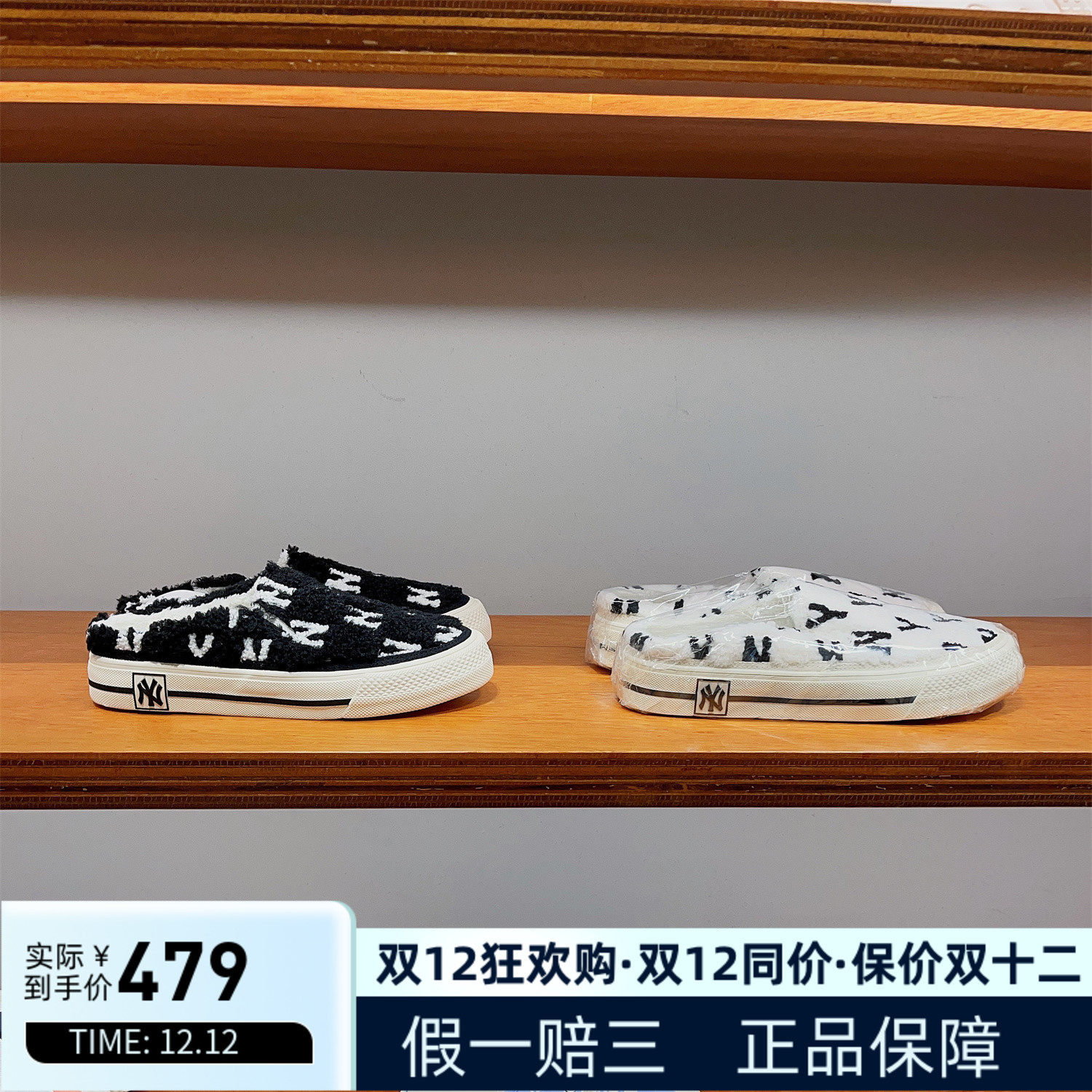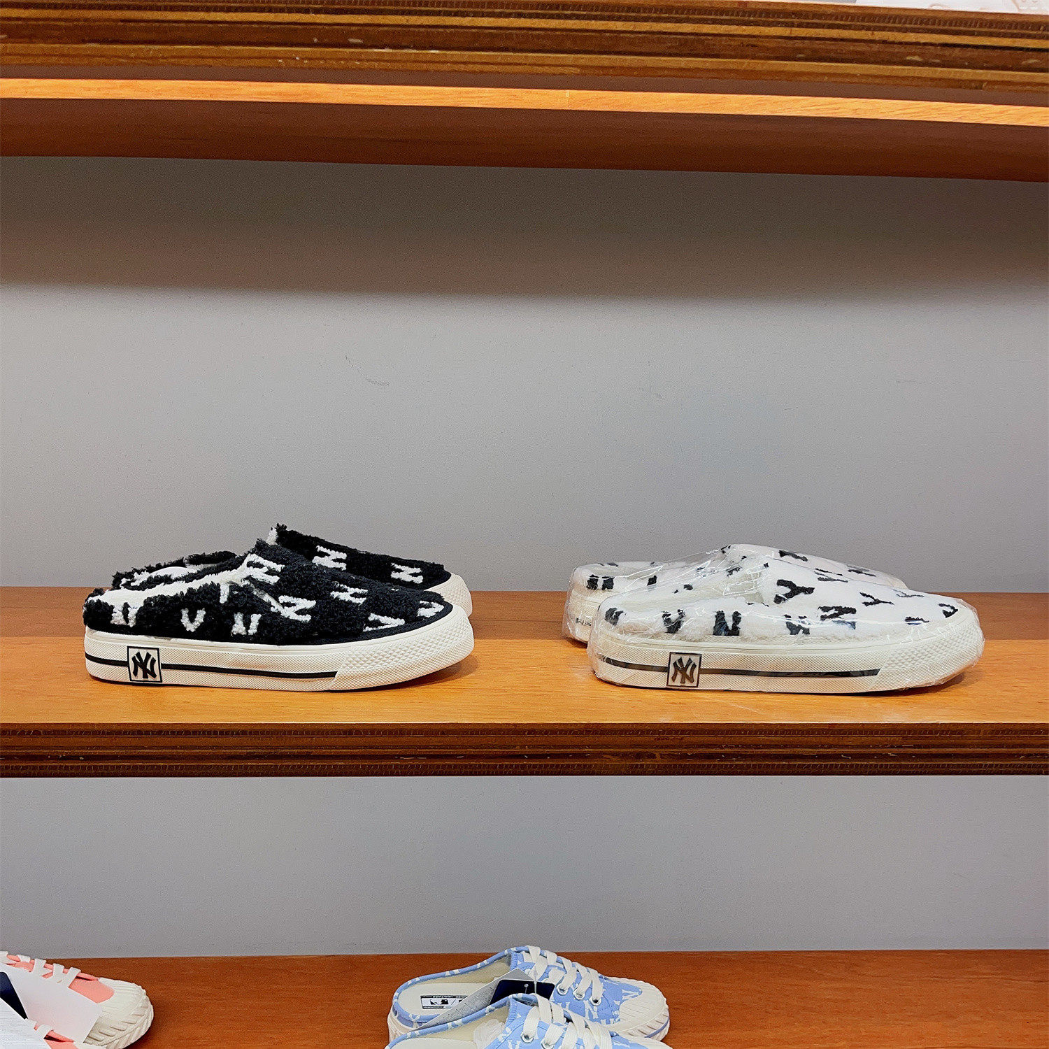 MLB Аутентичная мужская и женская обувь, полутапочки, толстая подошва, подчеркивающая одну ногу, пресбиопия Нью-Йорка, туфли из овечьей шерсти с полной маркировкой.