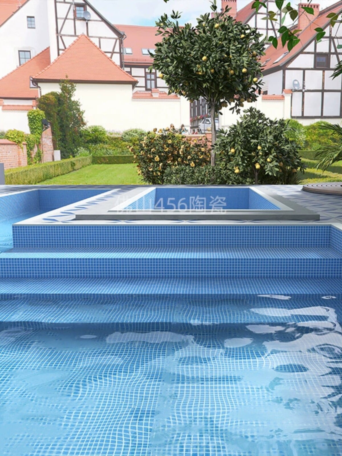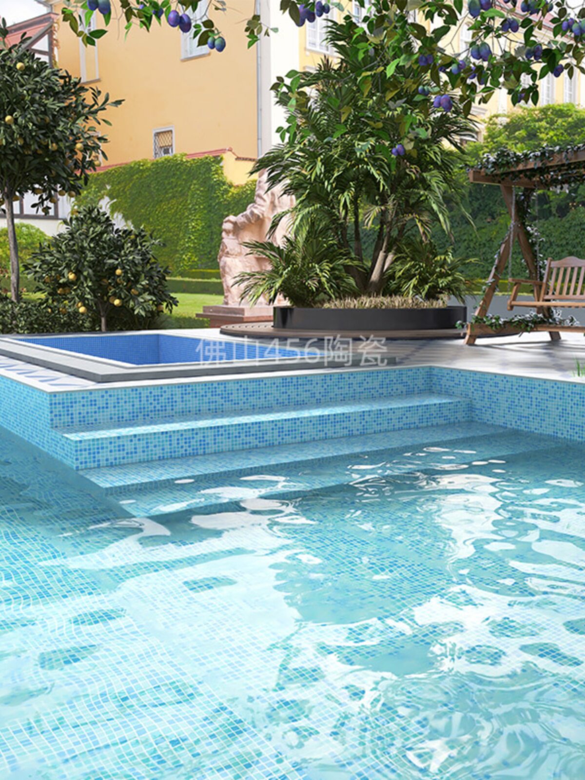 尚梅 Стеклянный нескользящий бассейн, синяя мозаика для детского сада