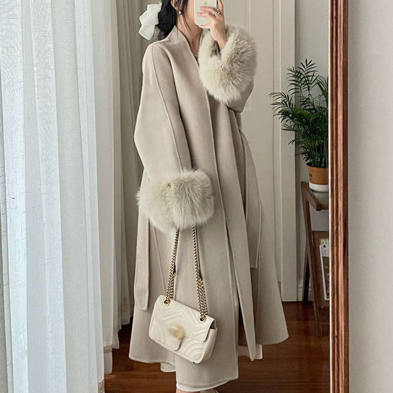 Двусторонное шерстяное шерстяное пальто, длинная кашемировая куртка, городской стиль, средней длины, премиум класс