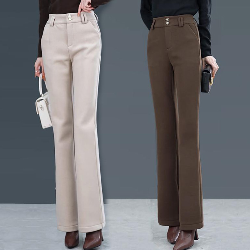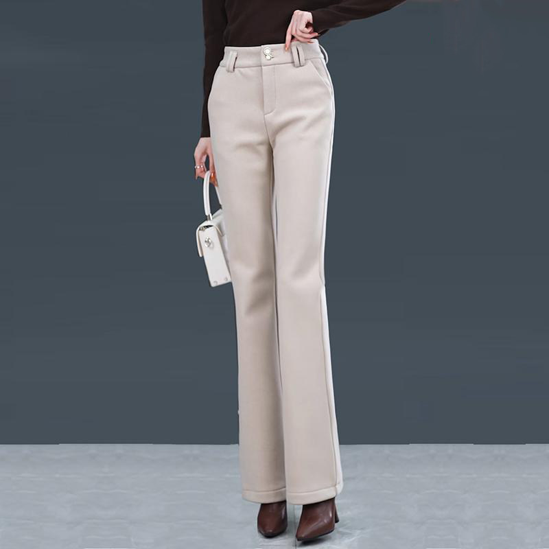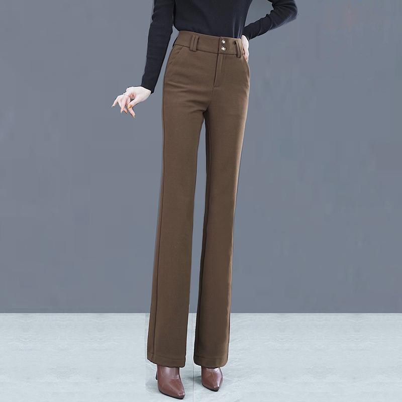 Шерстяные демисезонные штаны-клёш, леггинсы, модные универсальные приталенные повседневные брюки для отдыха, штаны, 2025 года, новая коллекция, высокая талия, свободный прямой крой