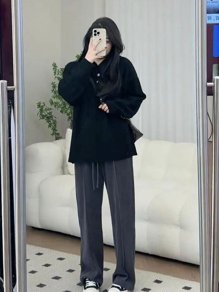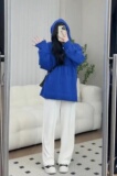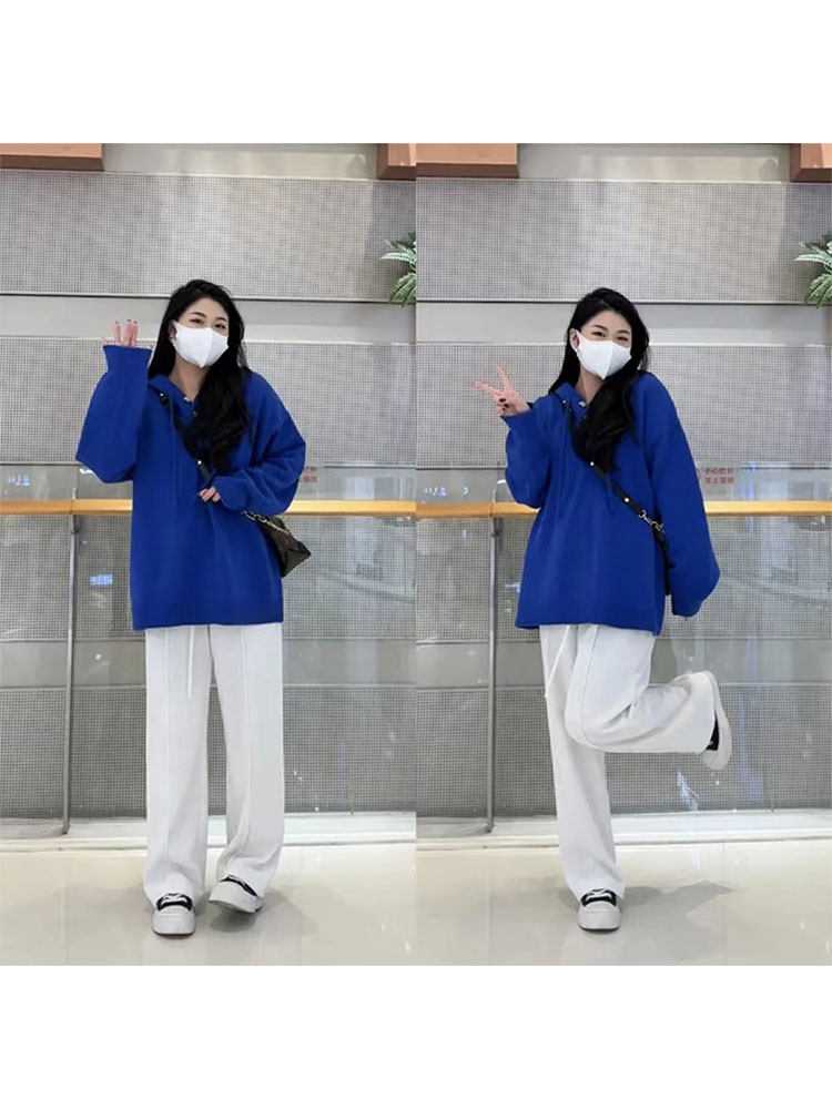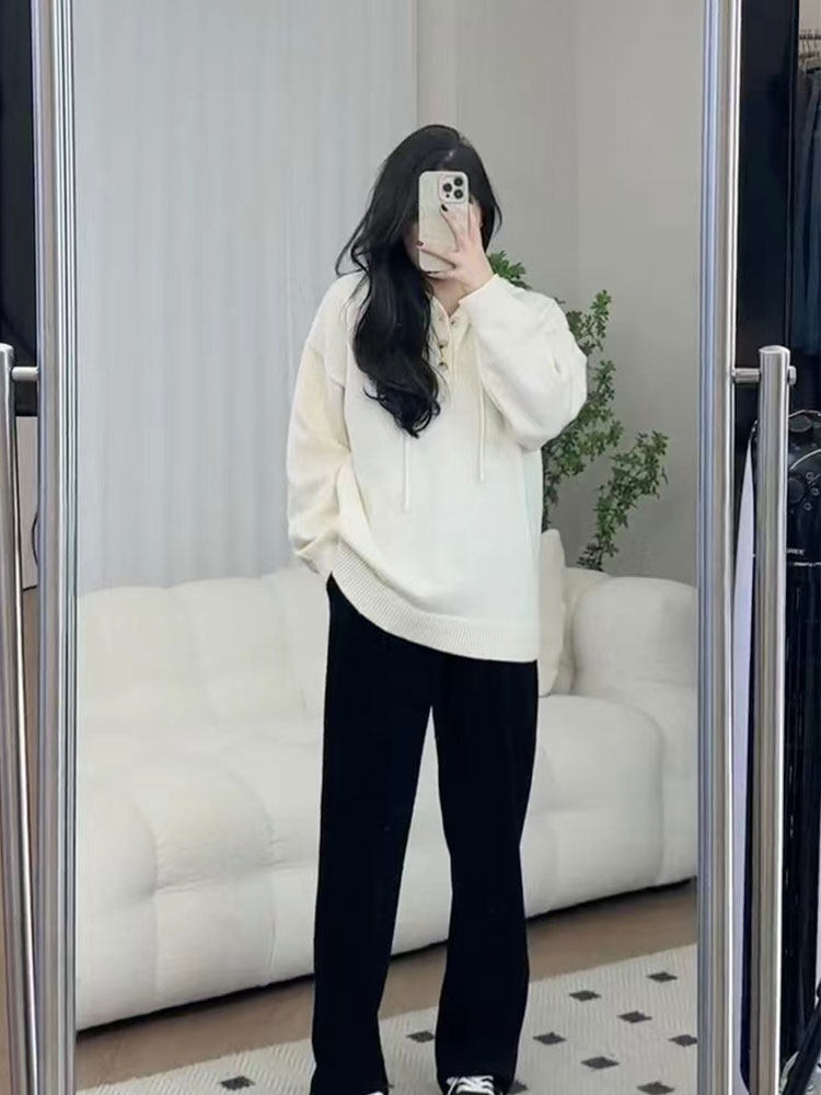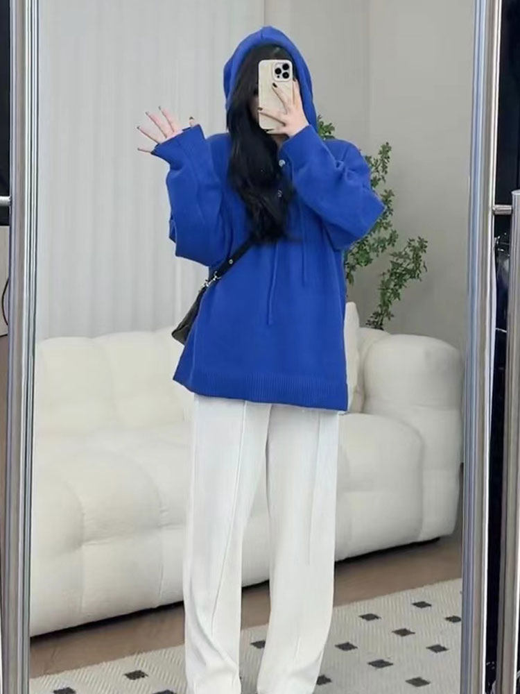 Демисезонный трикотажный свитер с капюшоном, большой размер