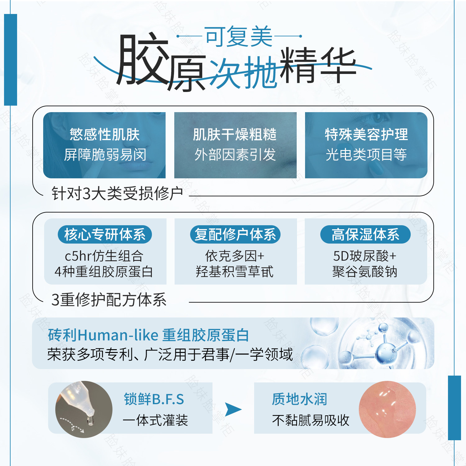 | Применимый опыт | Освежающая текстура, быстрое впитывание, подходит. Долгосрочный уход для смешанного типа кожи и чувствительной кожи. Стабилен и может сочетаться с другими эффектами по уходу за кожей. Продукты (такие как Kold/щеточная кислота) уменьшают количество шипов. Стимулирующий риск | In Retention 1.0 Успокаивающая увлажняющая основа включено, усиливая мгновенное покраснение и экран Способность к восстановлению нарушений, особенно подходит для стимулированных Быстрое восстановление после световой/водяной акупунктуры И зрелая кожа испытывает глубокую скорбь по К. |