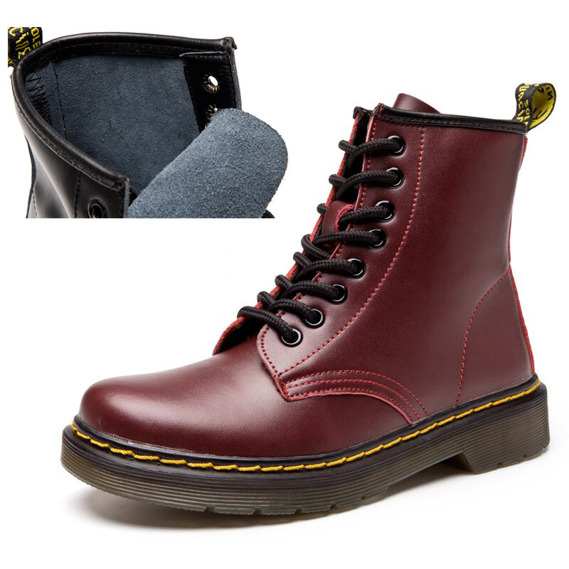 Martens, флисовые короткие сапоги, большой размер, из натуральной кожи
