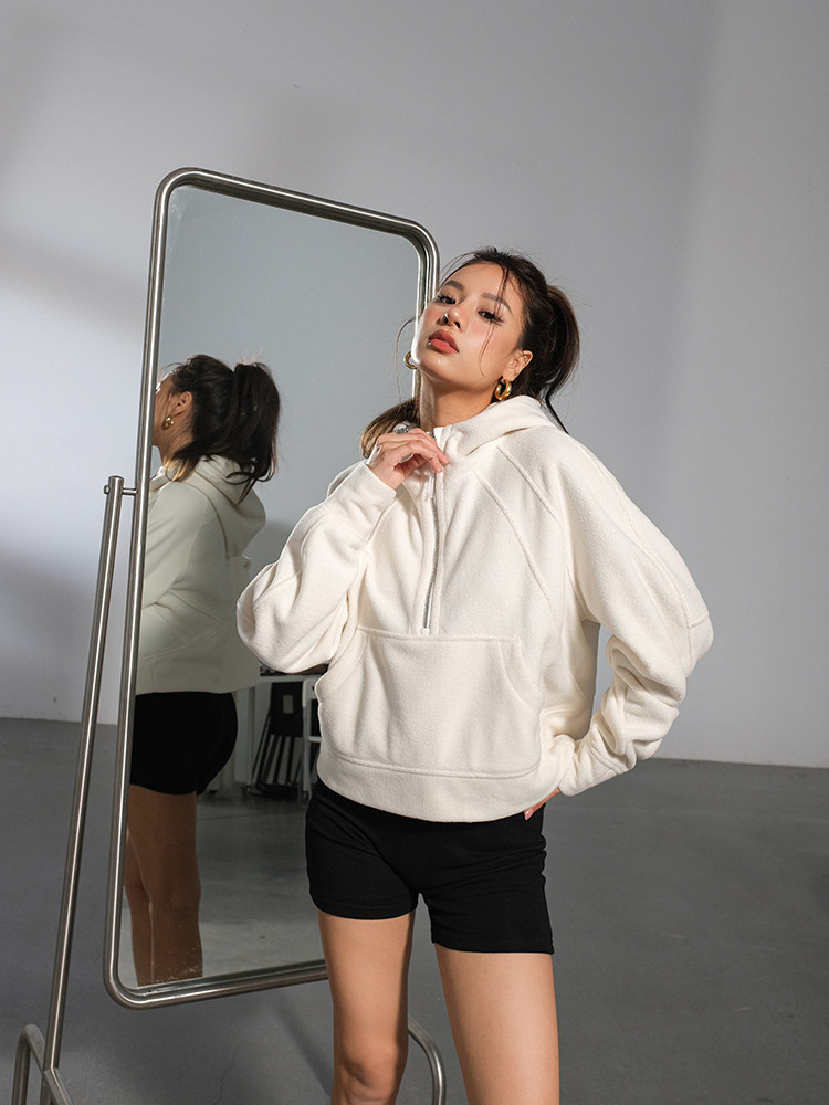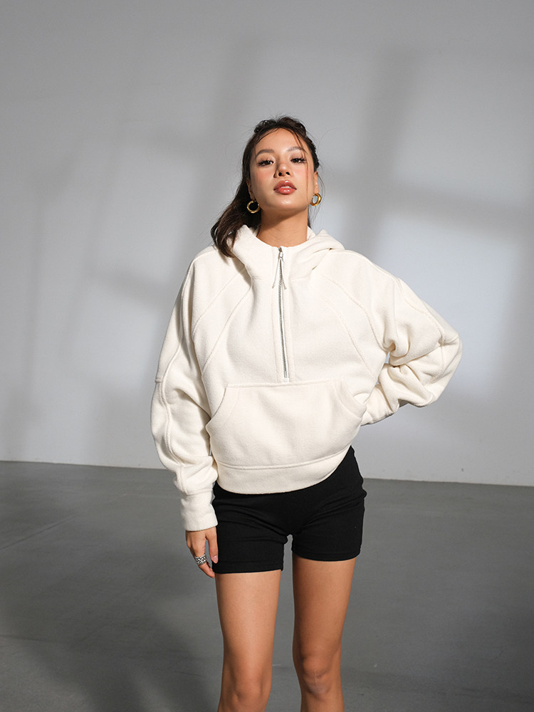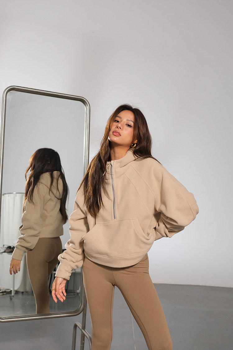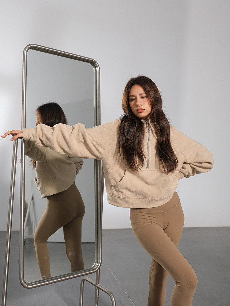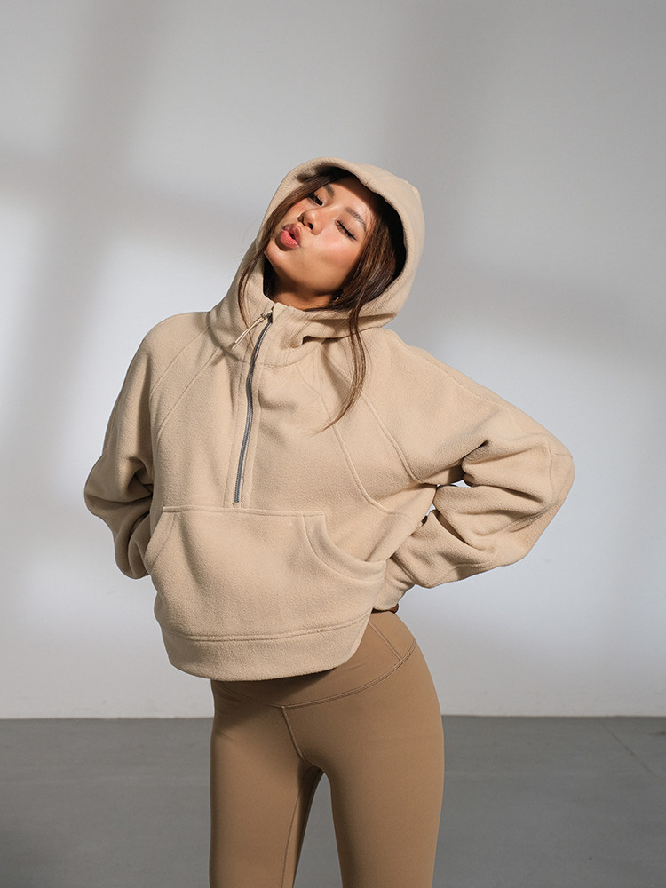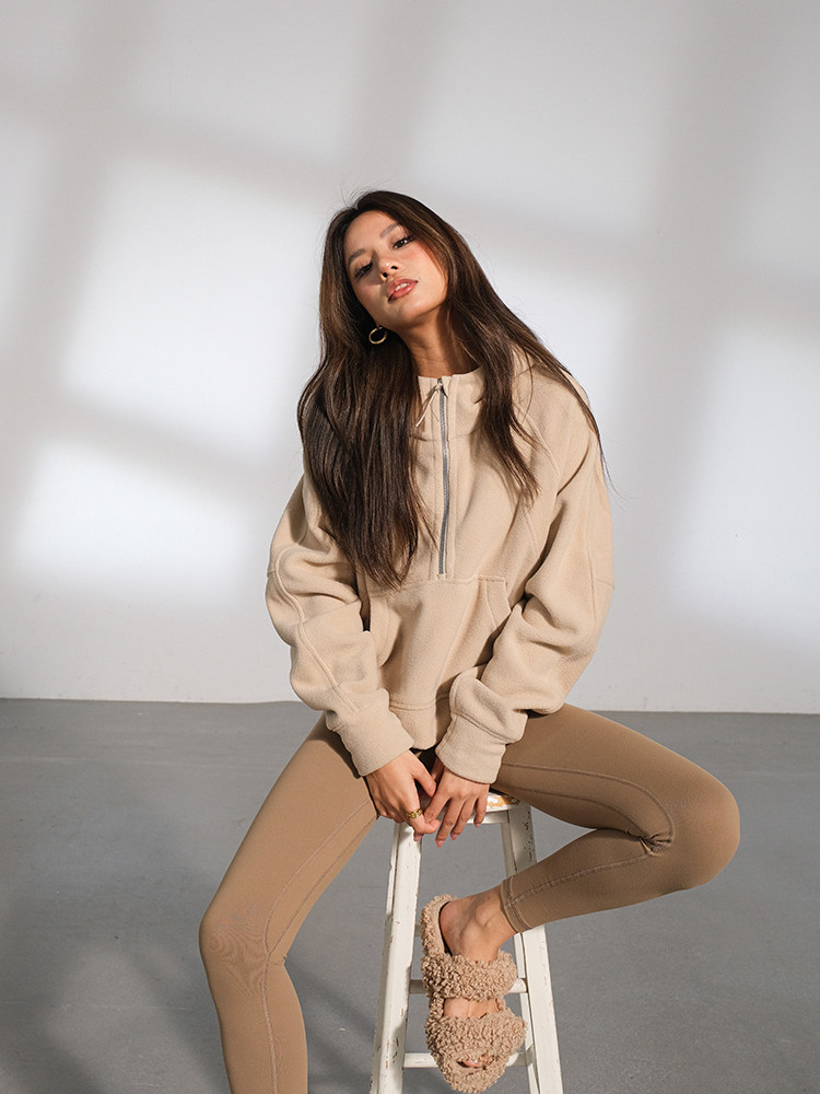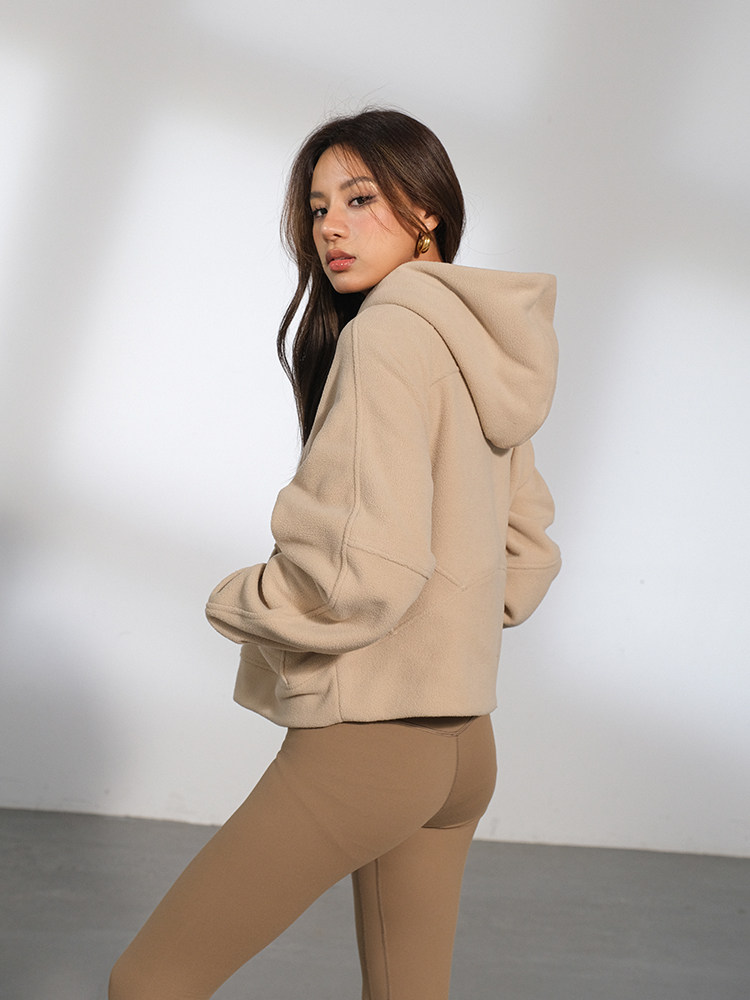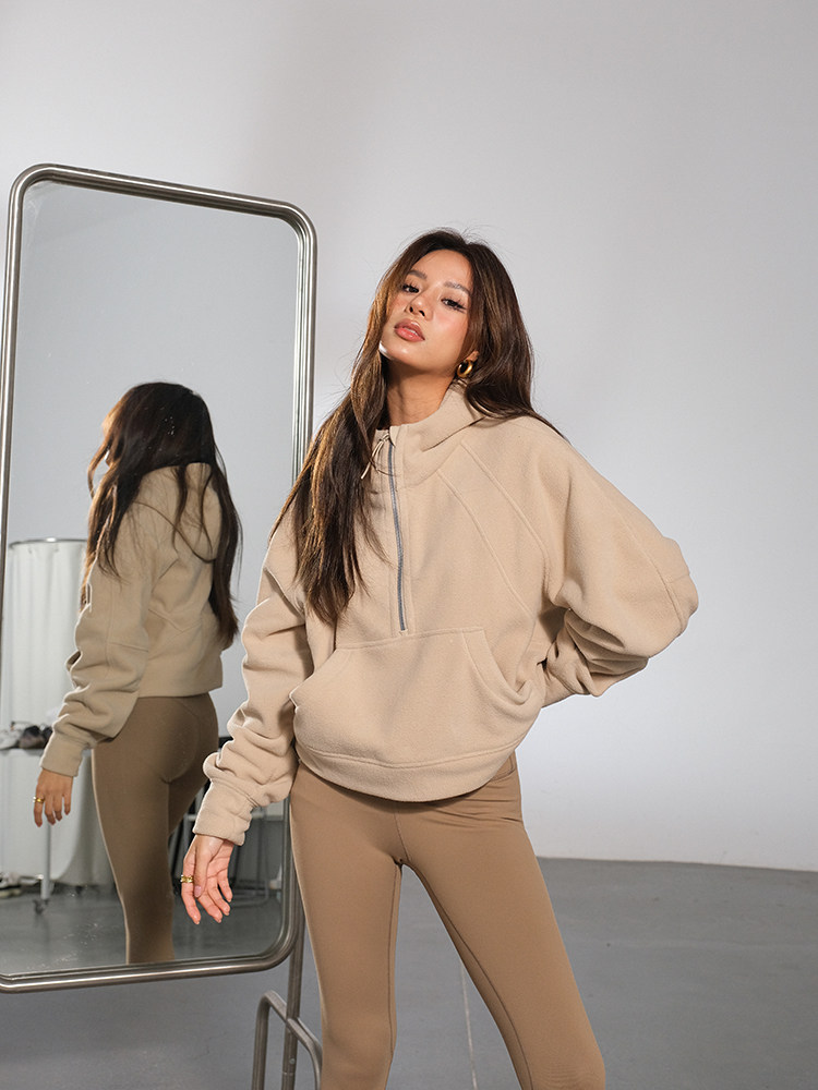 Желтовато-коричневая бархатная демисезонная брендовая флисовая толстовка, 2023, европейский стиль