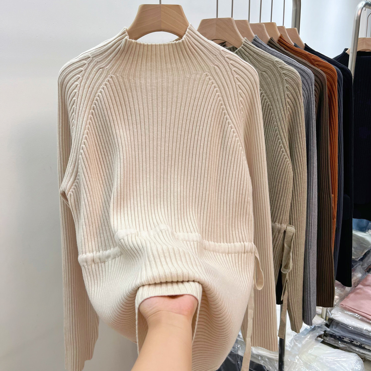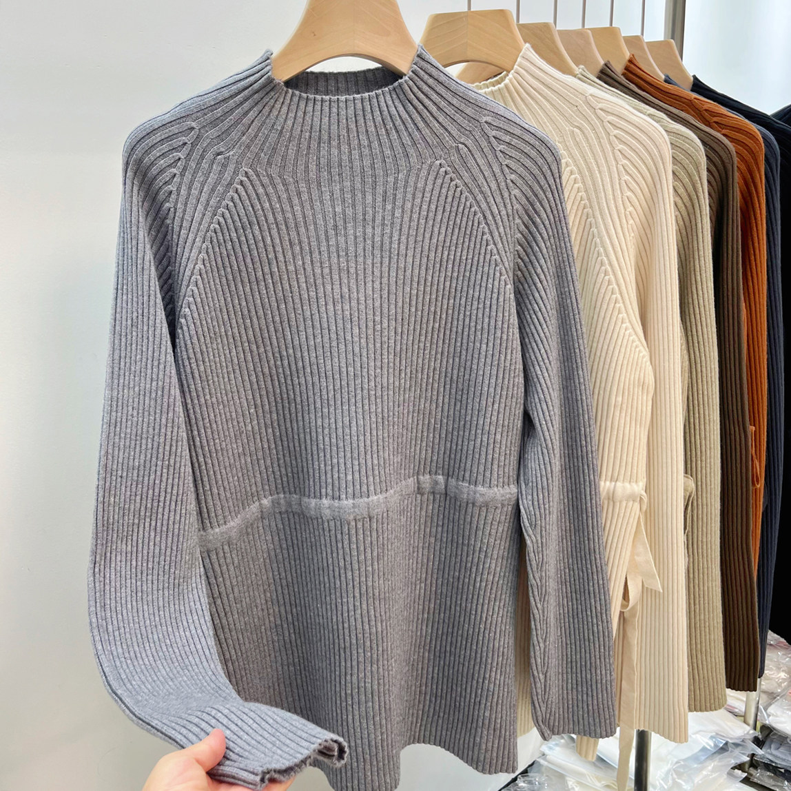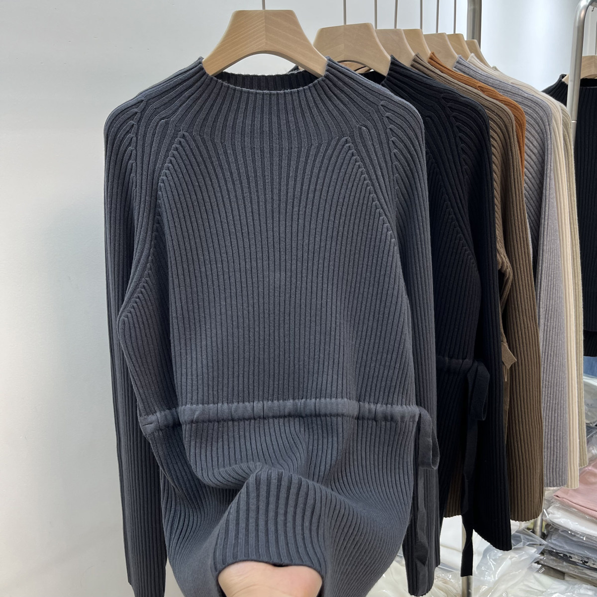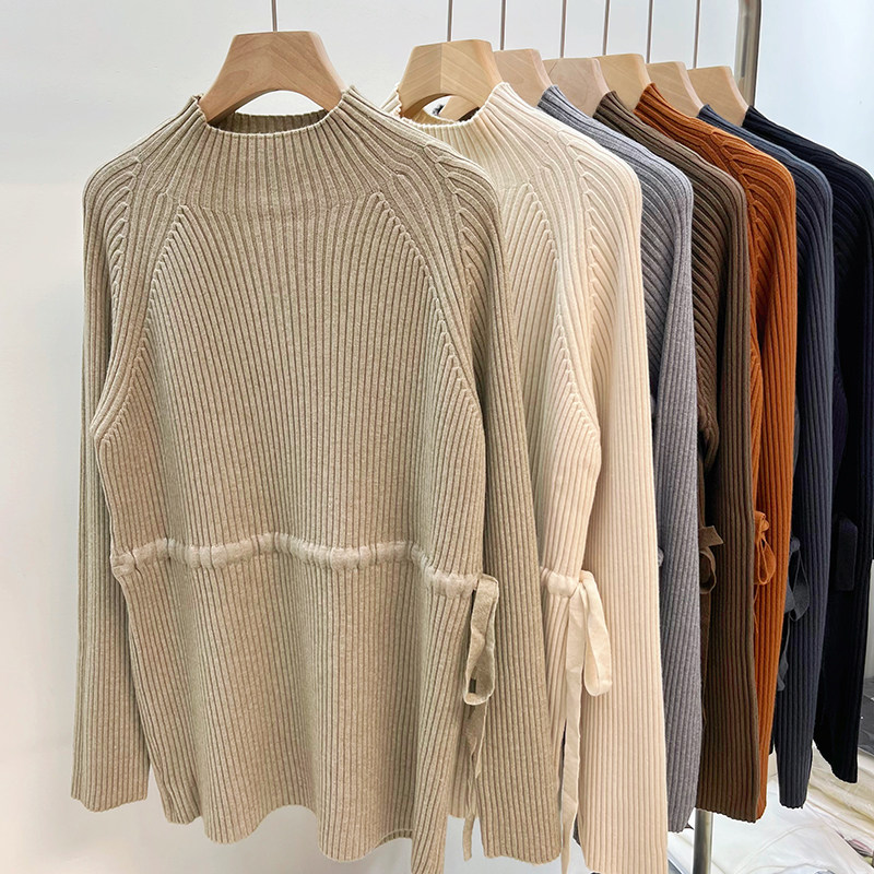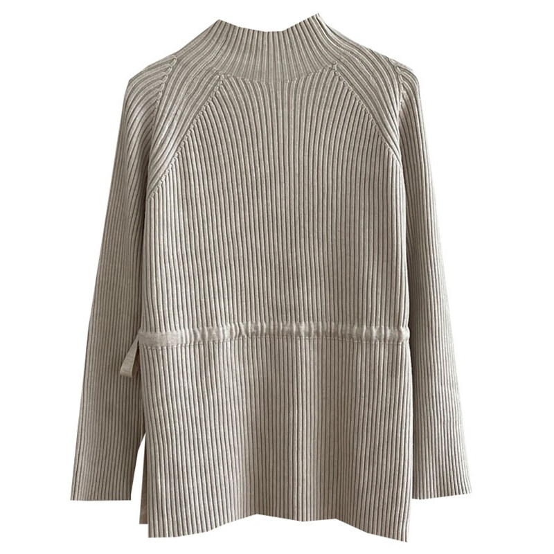 Демисезонный базовый свитер, приятные телу джинсы с начесом, длинный ремень, трикотажный корсет, высокий воротник, средней длины