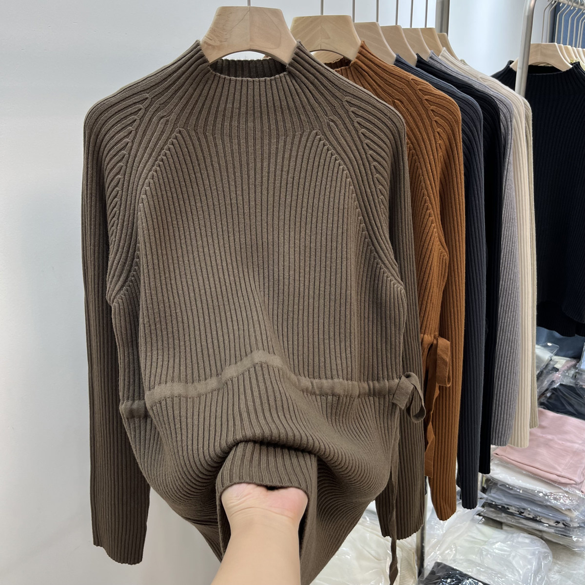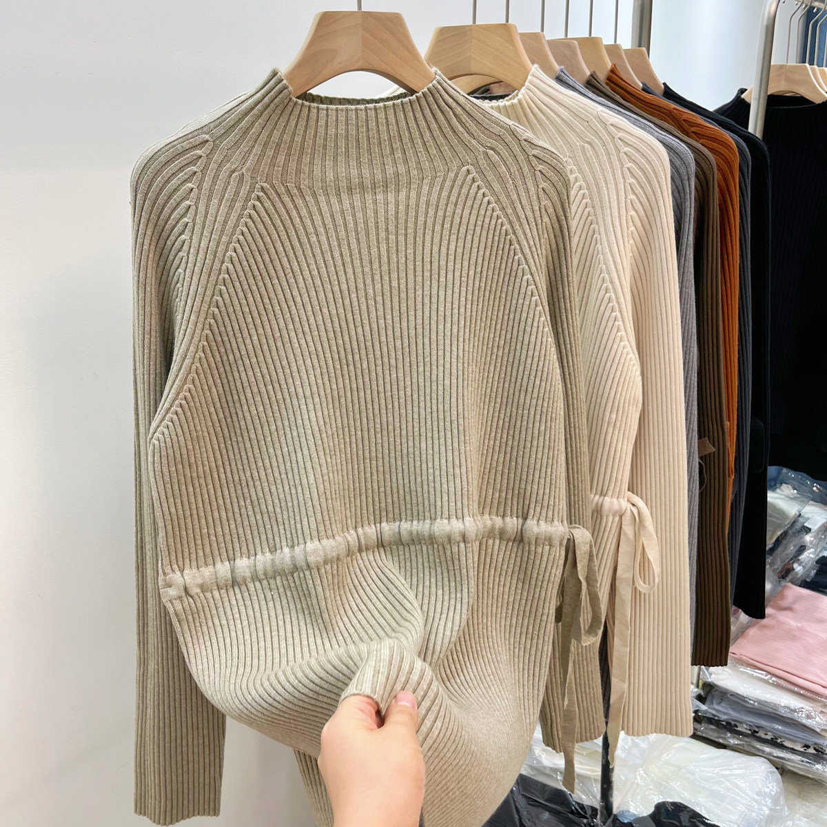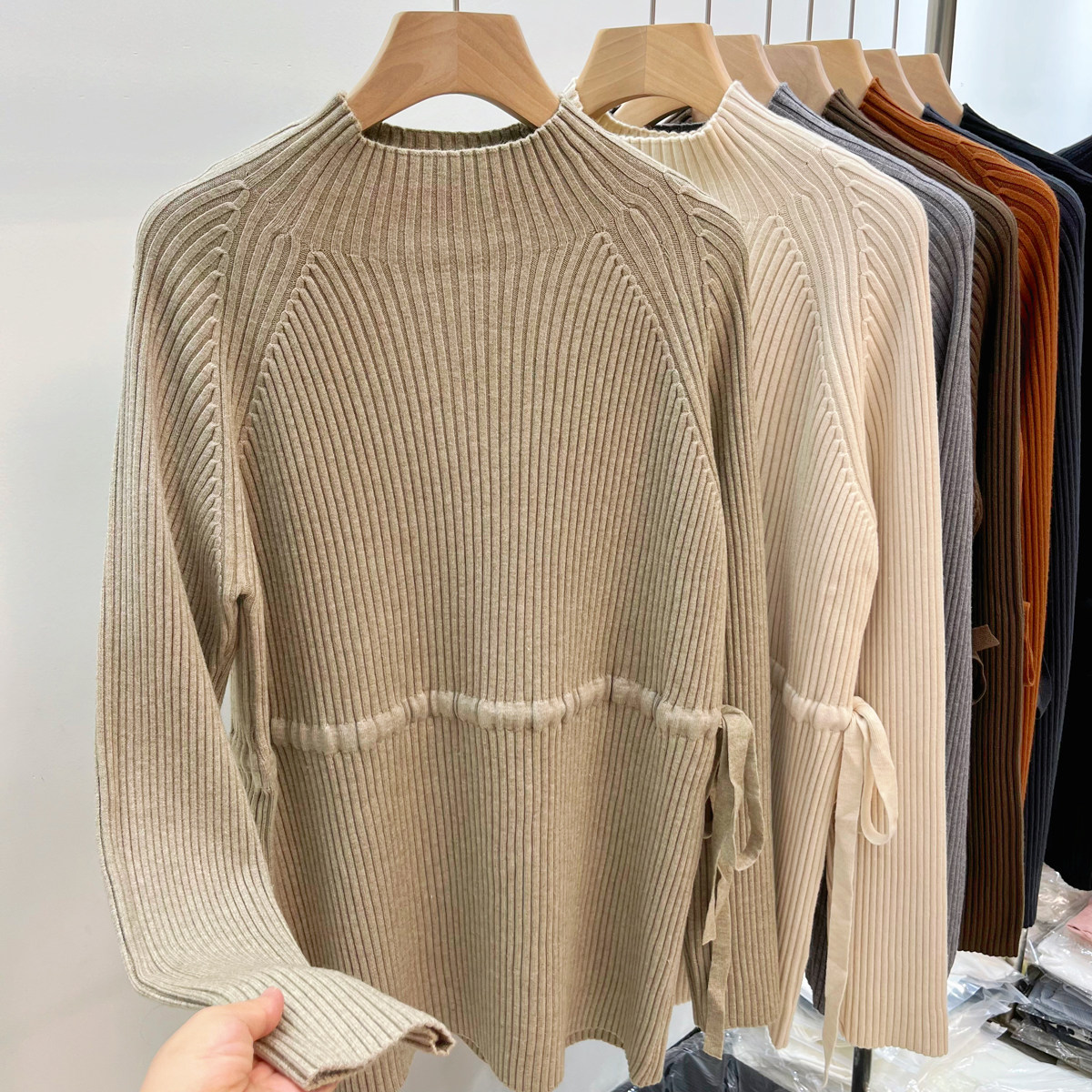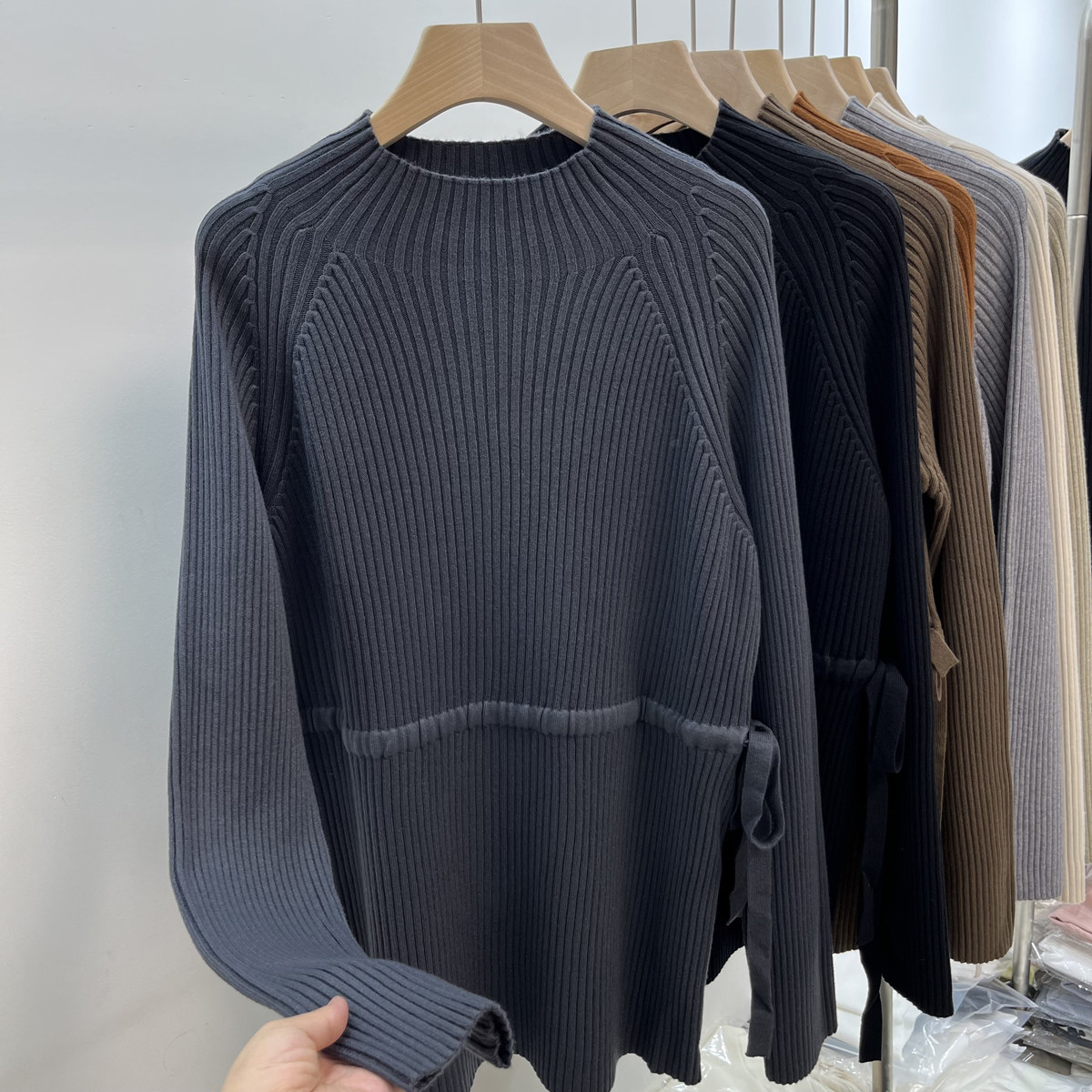 Демисезонный базовый свитер, приятные телу джинсы с начесом, длинный ремень, трикотажный корсет, высокий воротник, средней длины