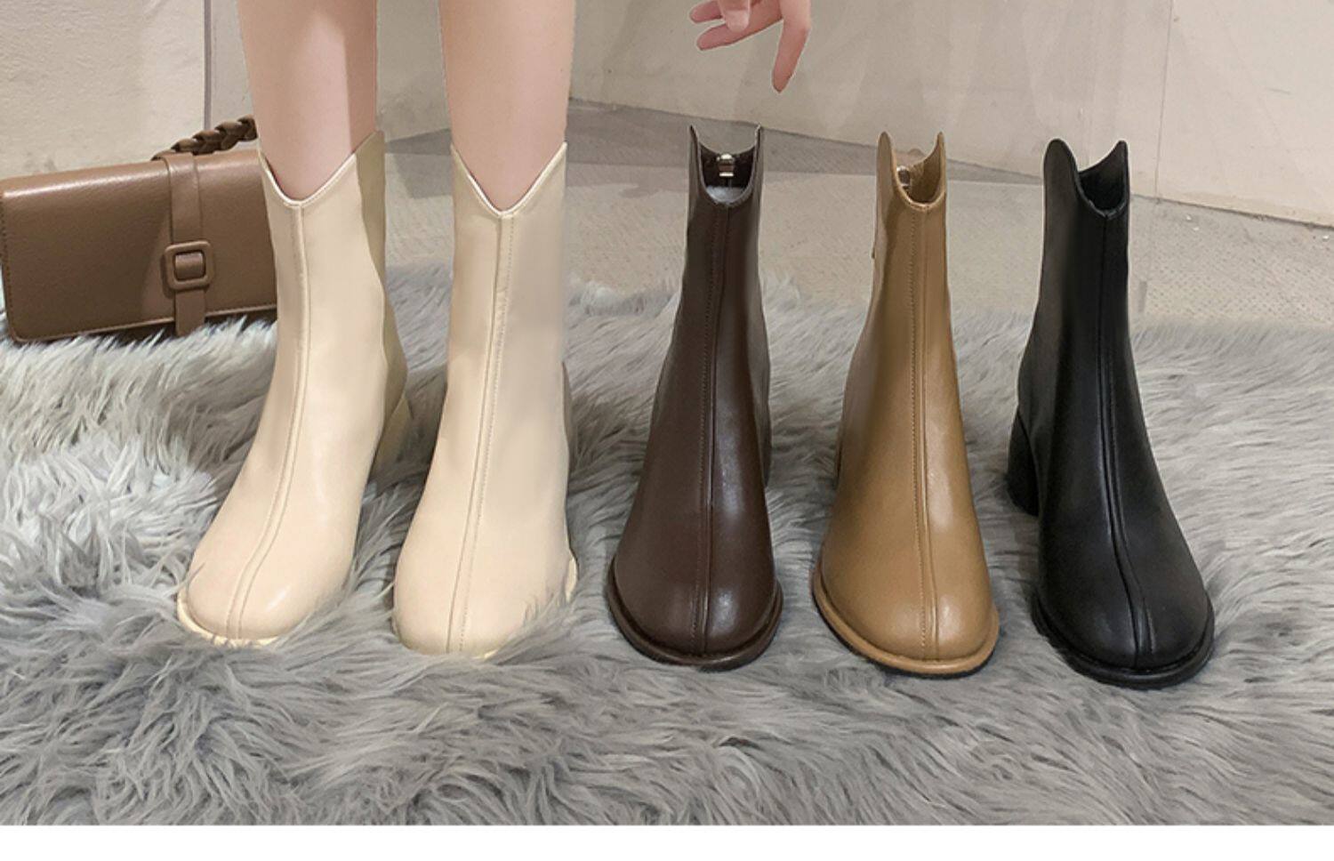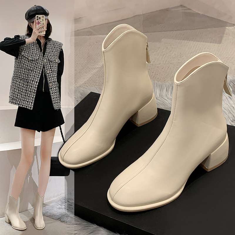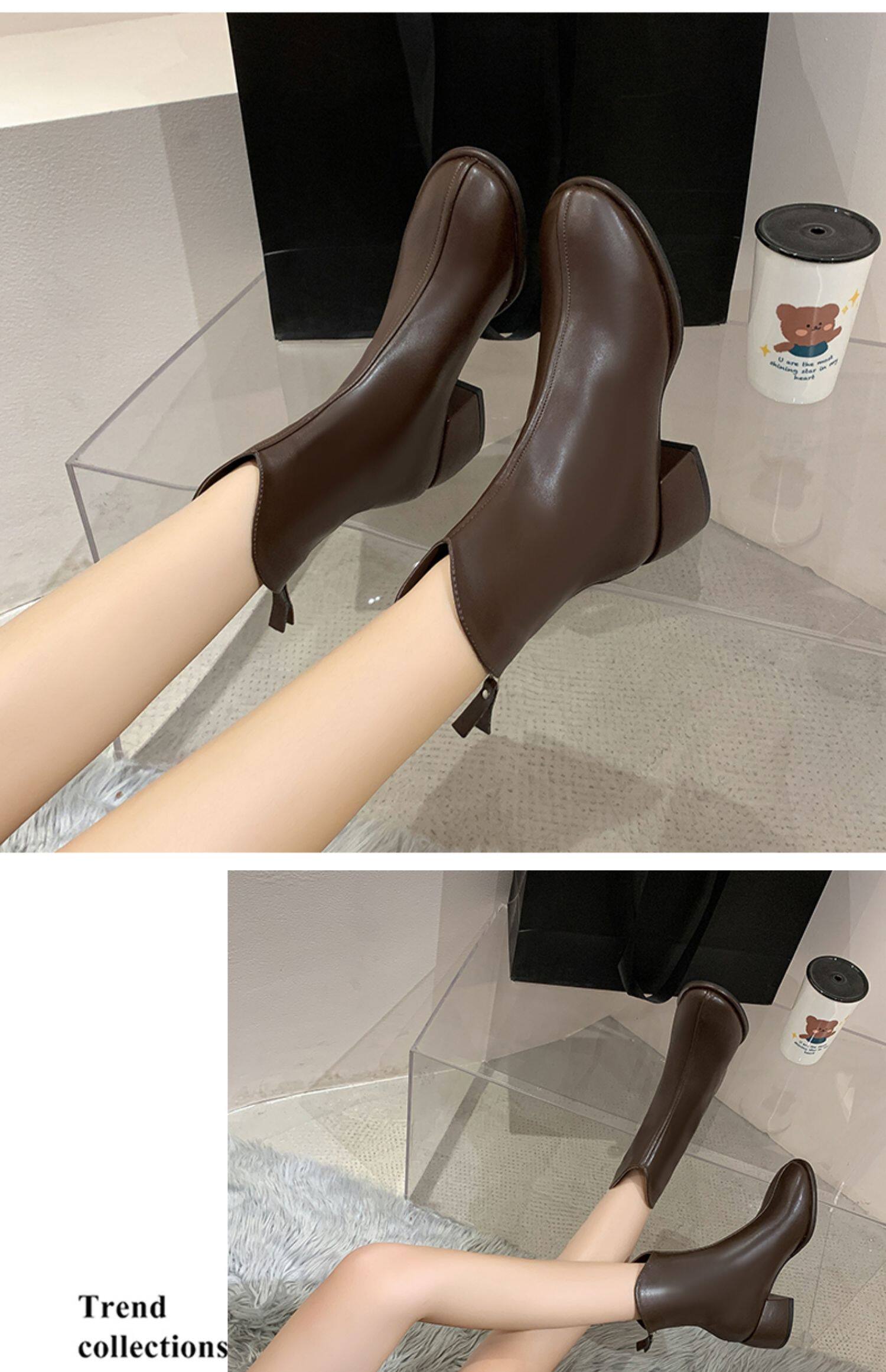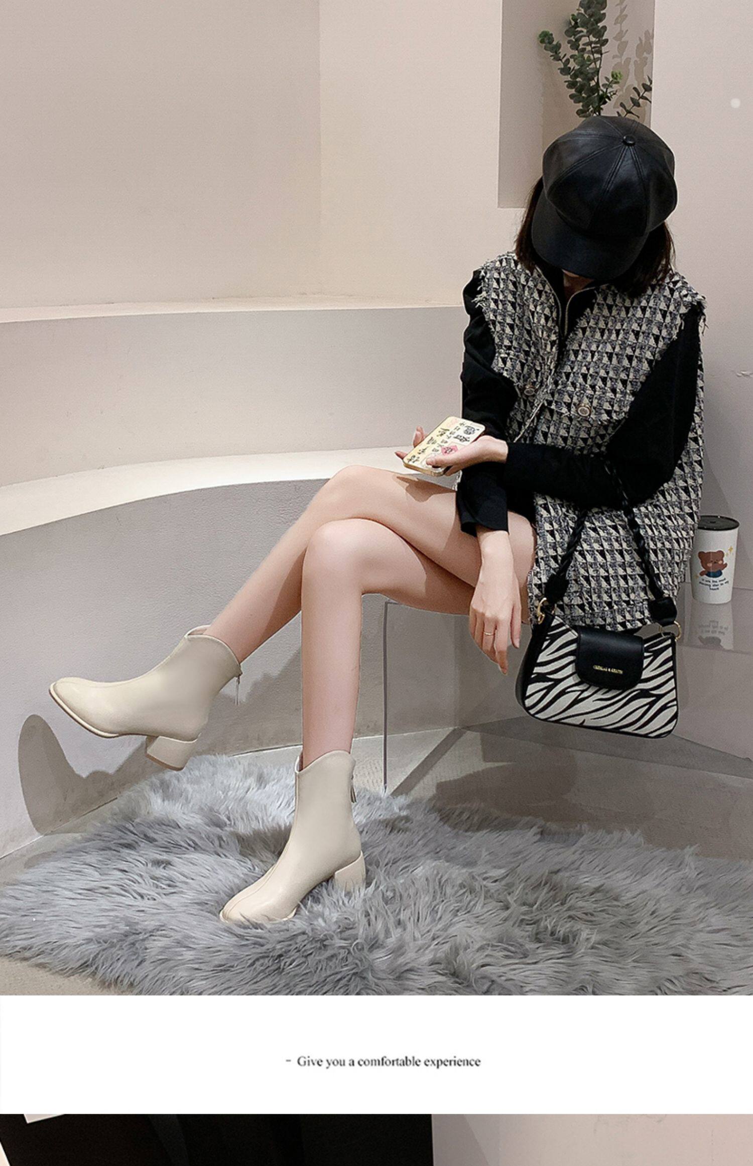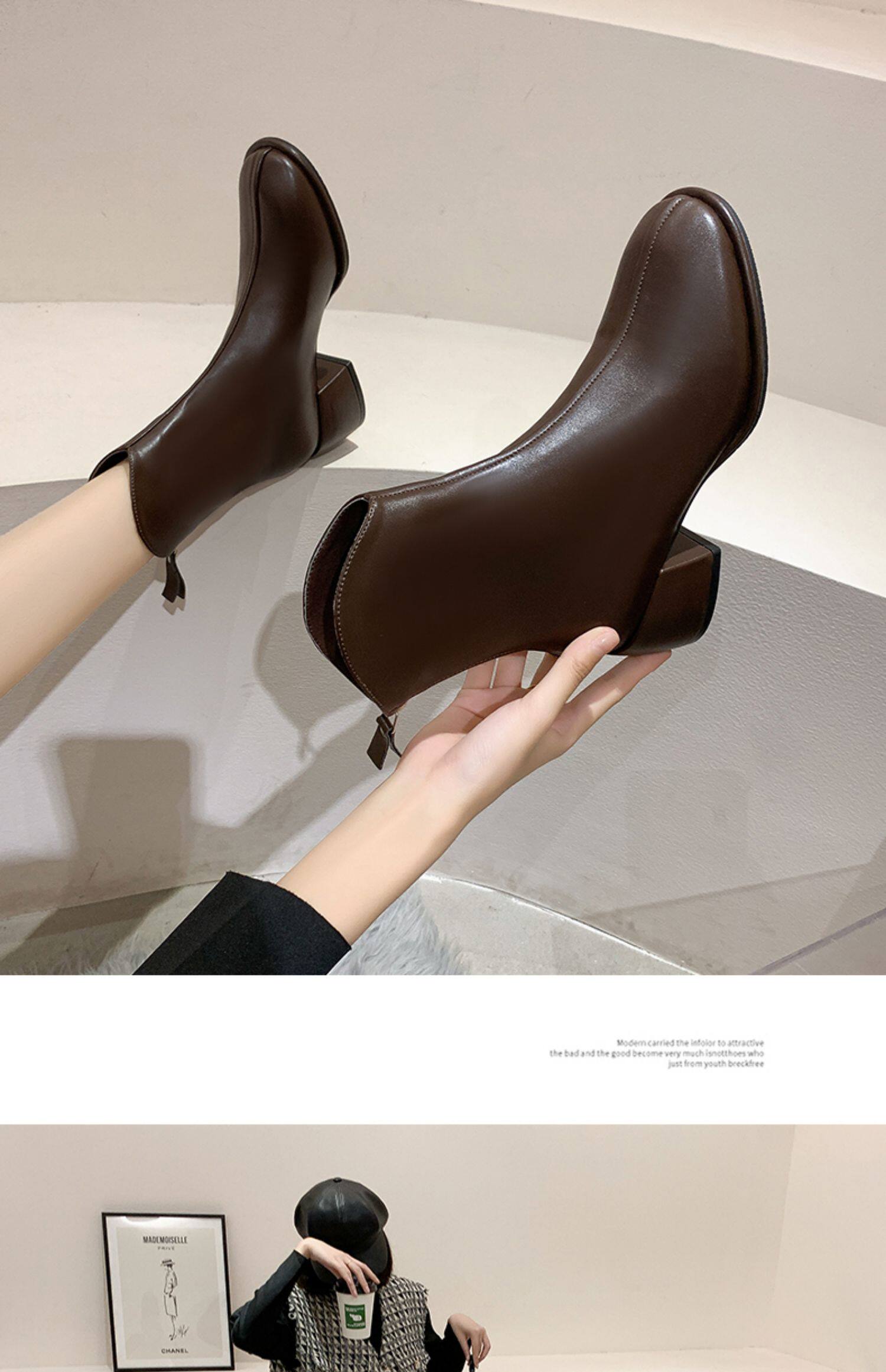 Martens, модные короткие сапоги, флисовые туфли на высоком каблуке, 2023, тренд сезона, французский стиль