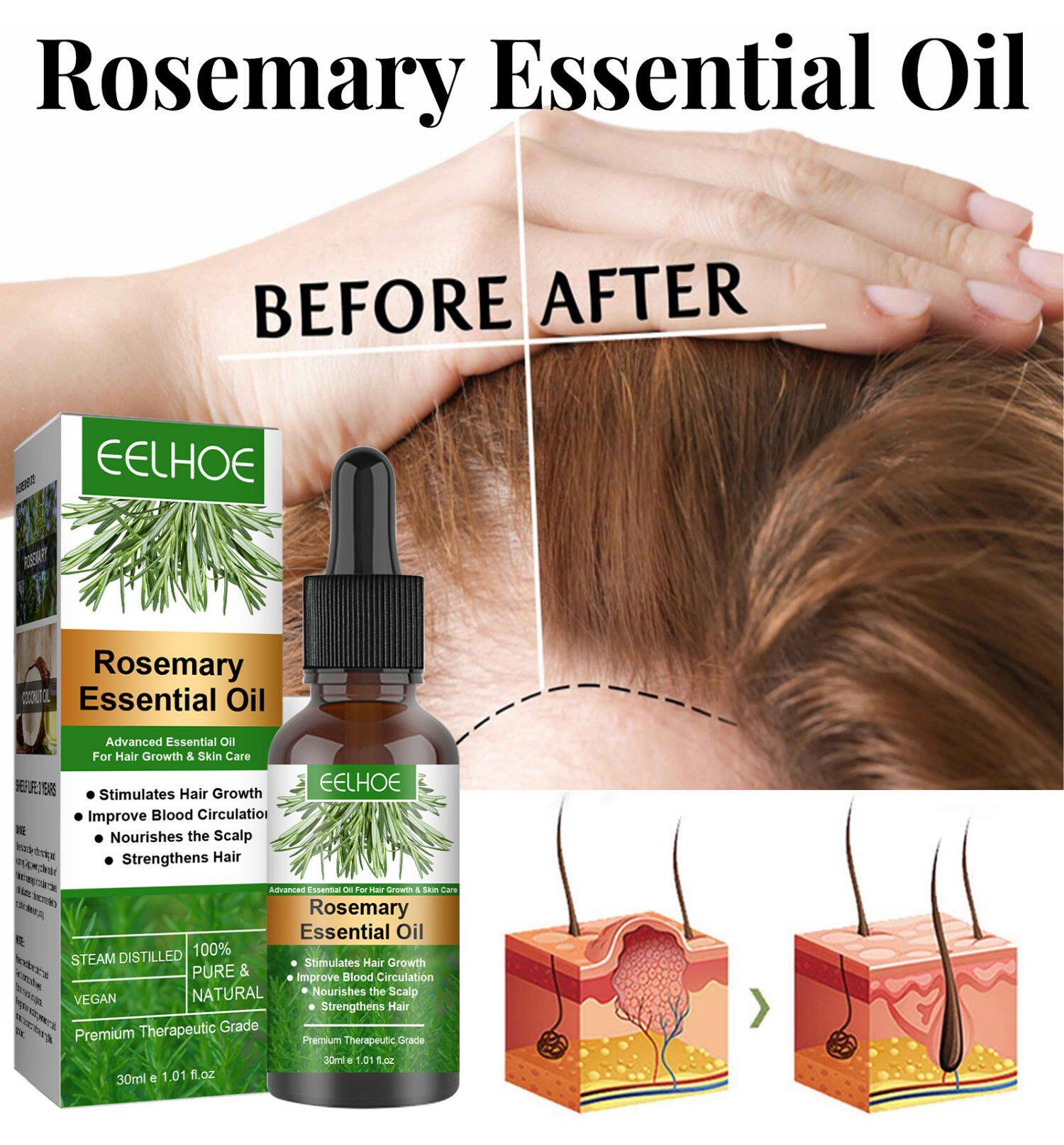 Rosemary Hair Care Care. Сыворотка для роста эфирного масла против выпадения волос