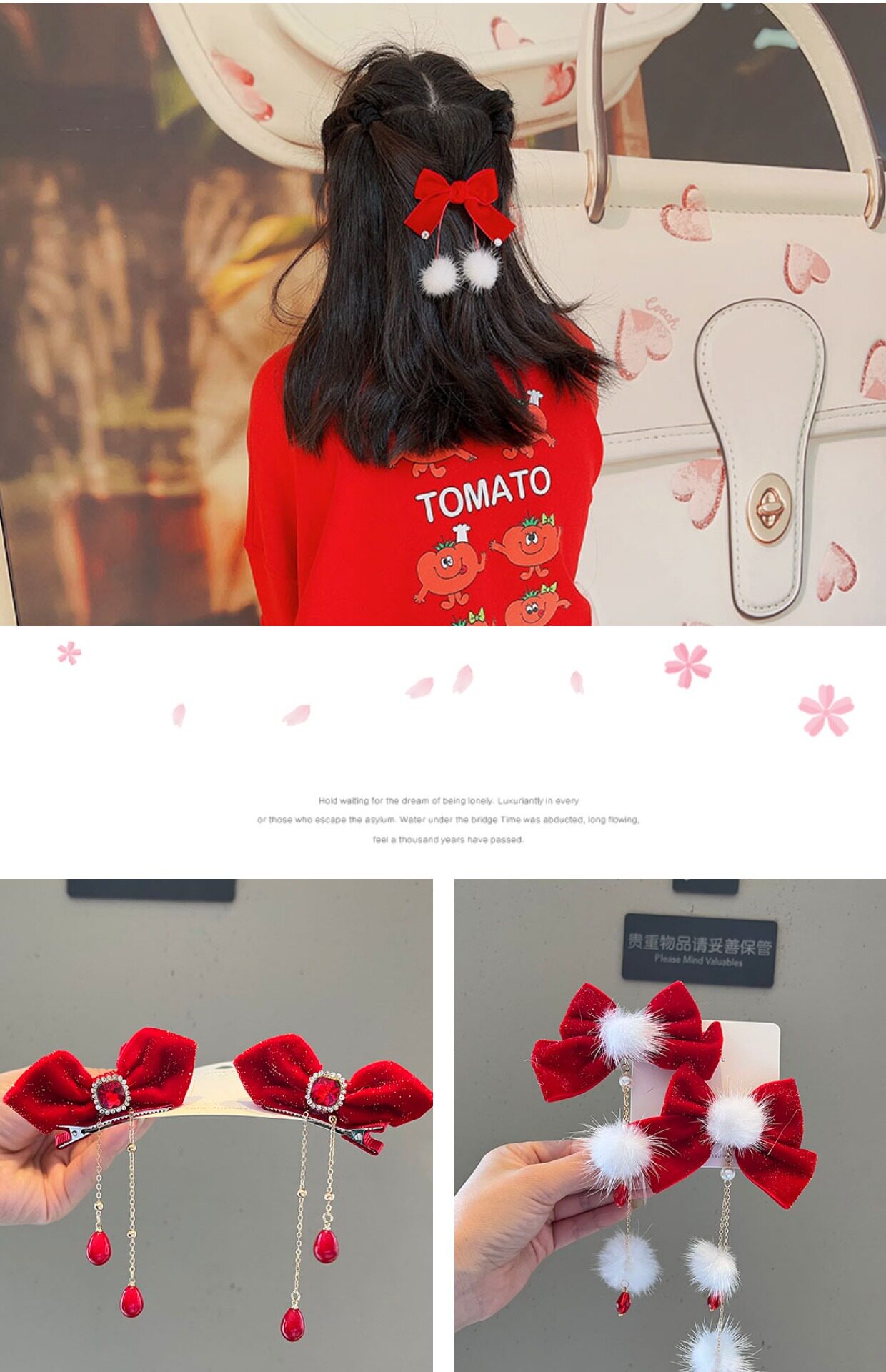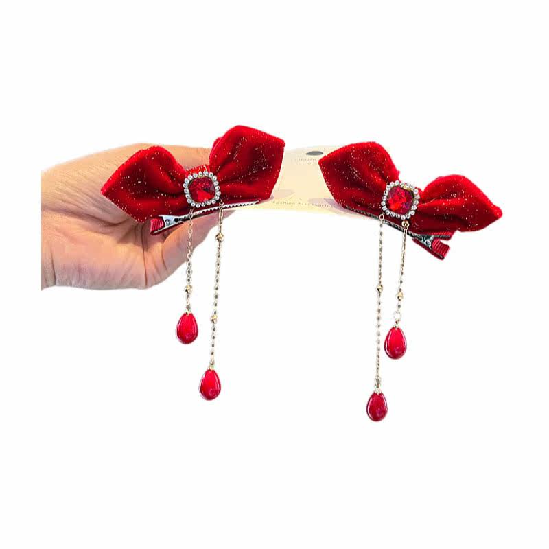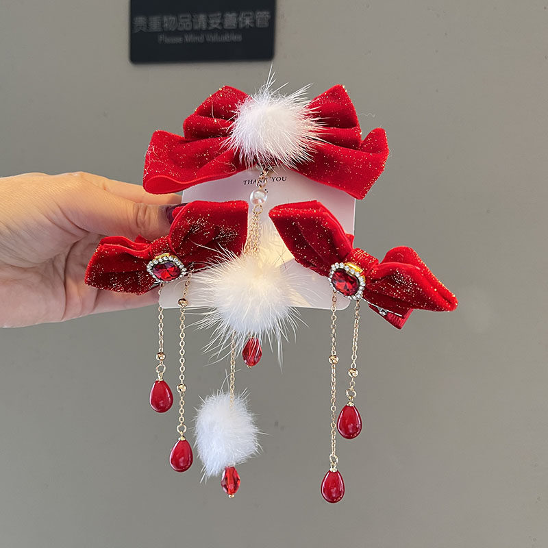 Бордовый аксессуар для волос с бантиком, детская заколка для волос, детские шпильки для волос с кисточками