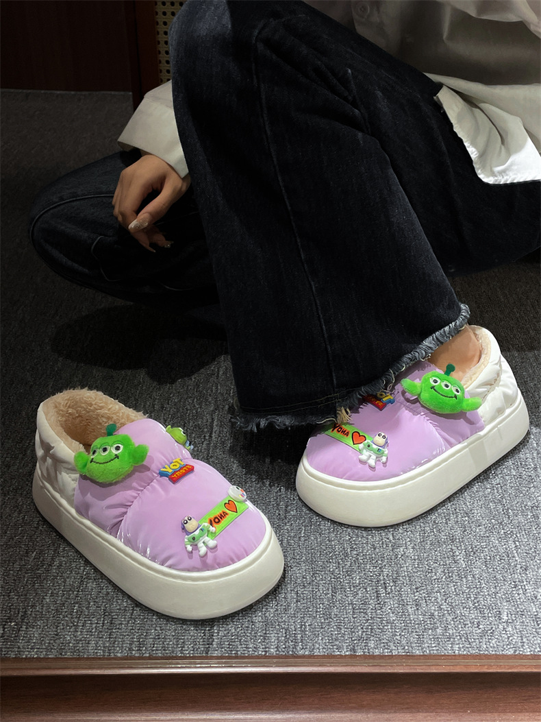 Мультяшная зимняя обувь на платформе, флисовые удерживающие тепло туфли, коллекция 2022