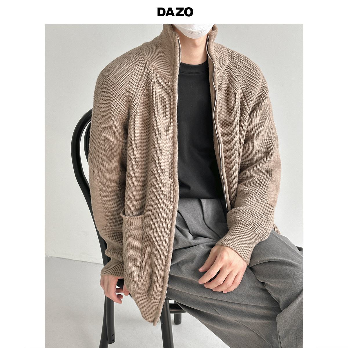 Свитер, однотонная куртка, кардиган с молнией, осенний, изысканный стиль