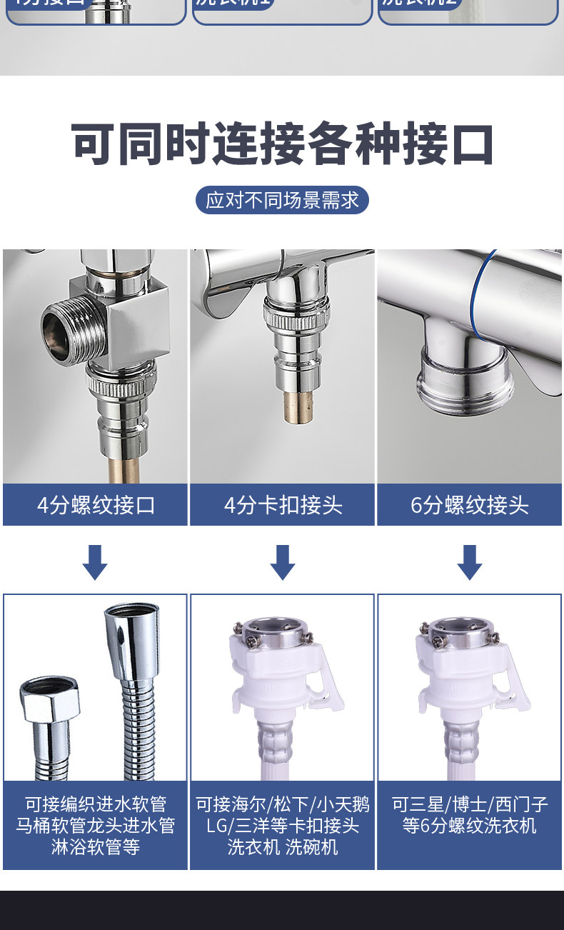Треугольный клапан Полный медь в одном -дюймовом клапане три из туалетного клапана стиральная машина вода