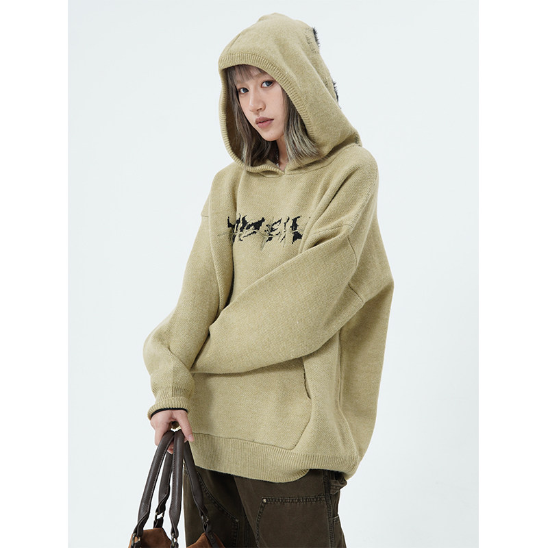 Оригинальный дизайнерский свитер с капюшоном подходит для мужчин и женщин, трикотажная демисезонная утепленный лонгслив, тренд сезона, в американском стиле, свободный крой