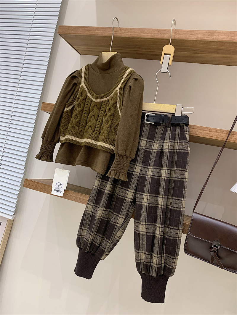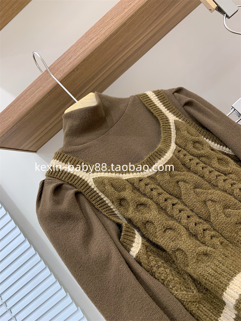 Зимний флисовый базовый приятный телу трикотажный жилет с косичкой, комплект, детская одежда, высокий воротник, рукава фонарики