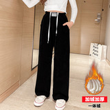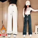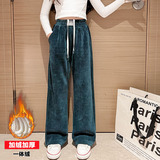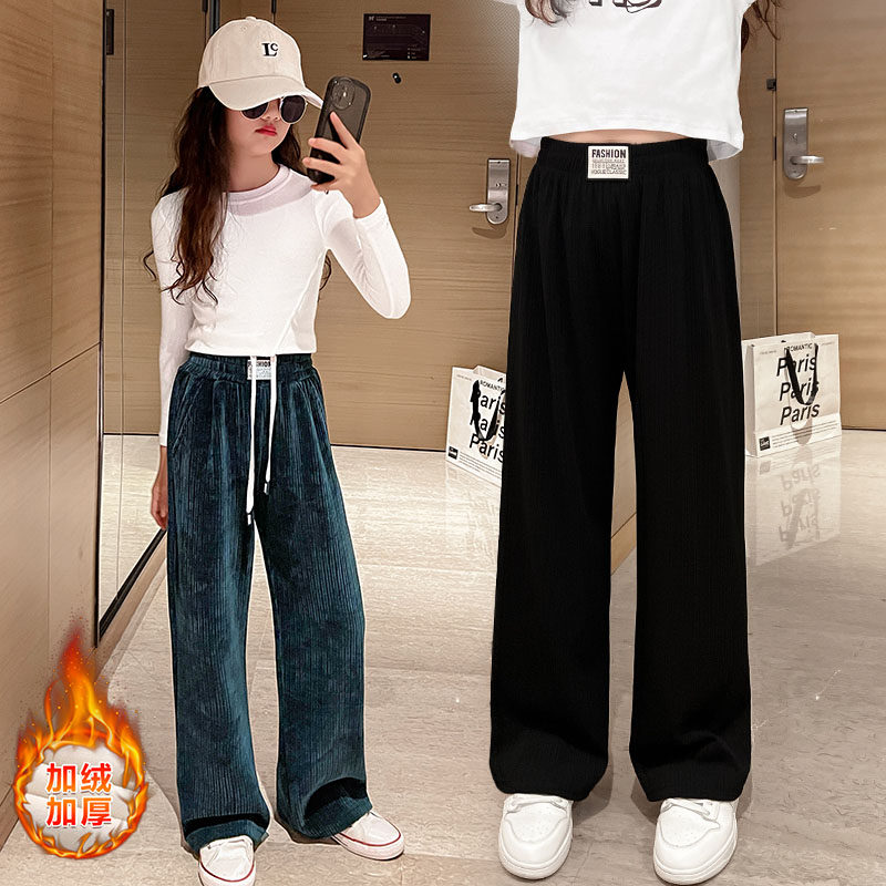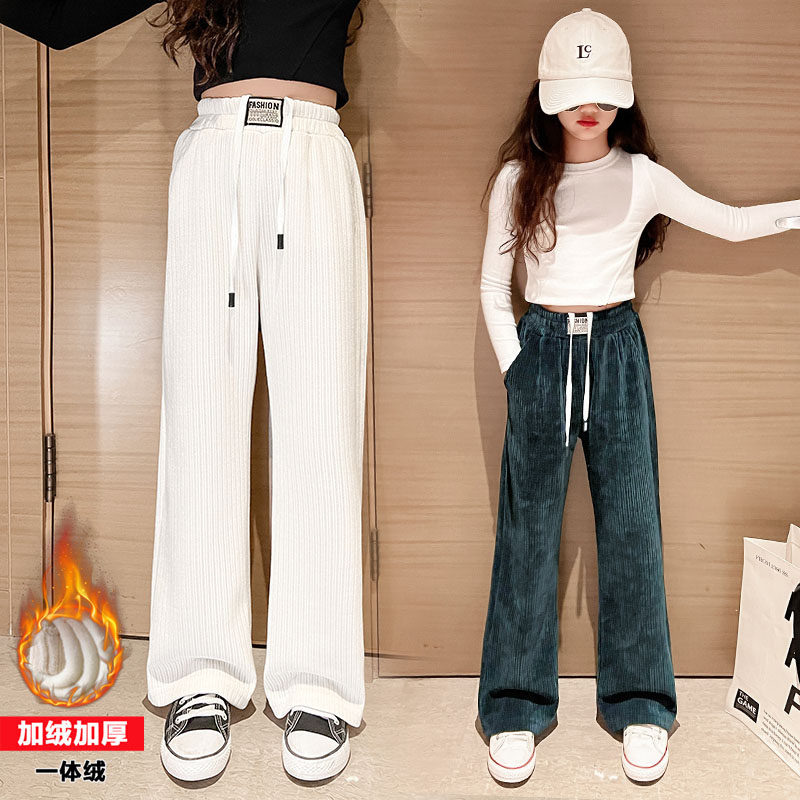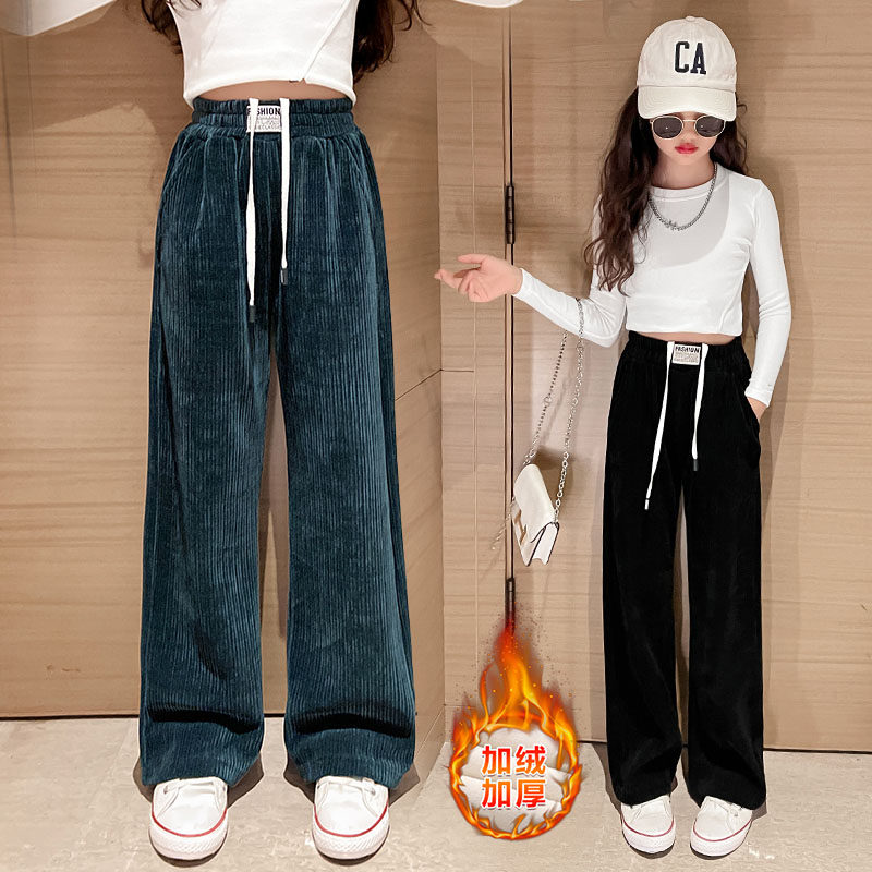 Демисезонные флисовые детские вельветовые штаны, коллекция 2023, в западном стиле, свободный прямой крой, подходят для подростков