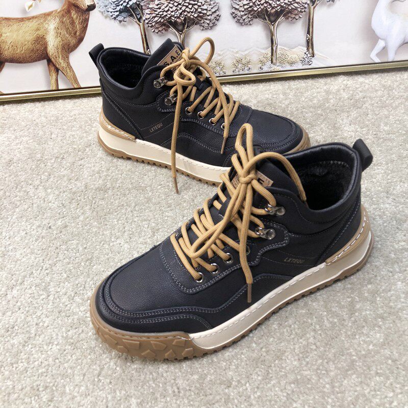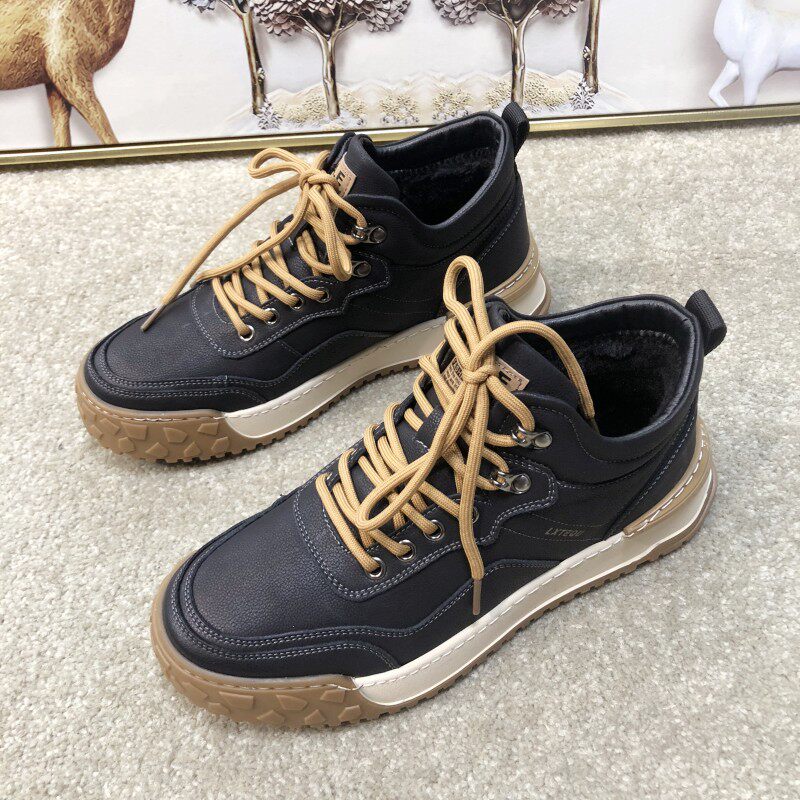 Высокие туфли, кожаные ботинки, хлопчатобумажные туфли, мужские осенние и зимние зимние ботинки, мужские бархатные мужские туфли в корейском стиле, хлопковые ботинки, повседневная зимняя обувь, мужские ботинки Martin.