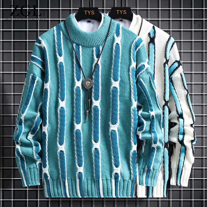 Мужской демисезонный трендовый шерстяной трикотажный свитер, высокий воротник, оверсайз