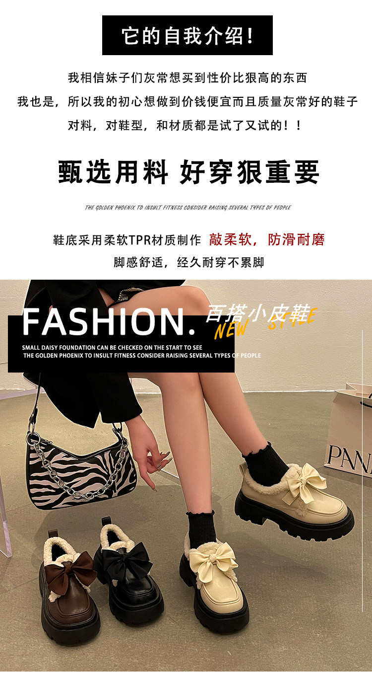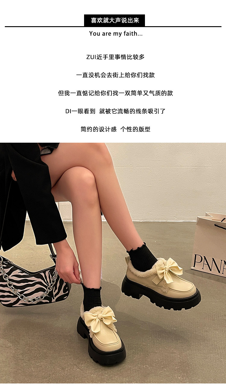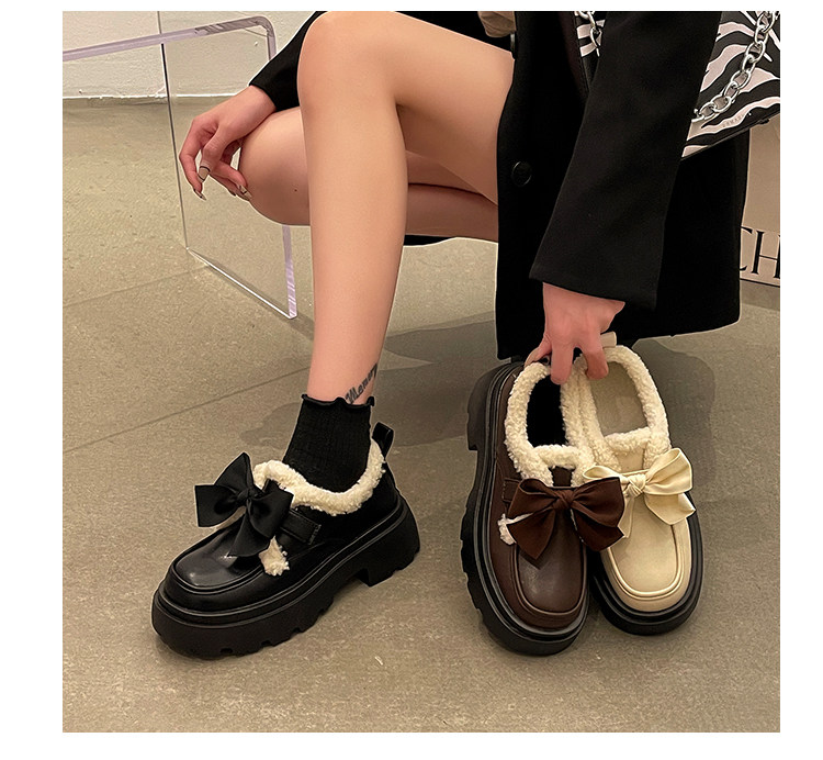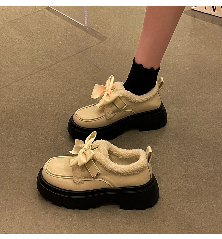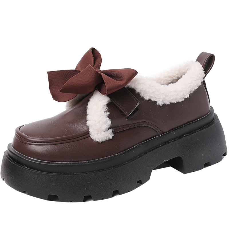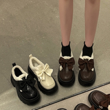 Модная флисовая демисезонная обувь с бантиком для кожаной обуви, демисезонные лоферы на платформе, коллекция 2022