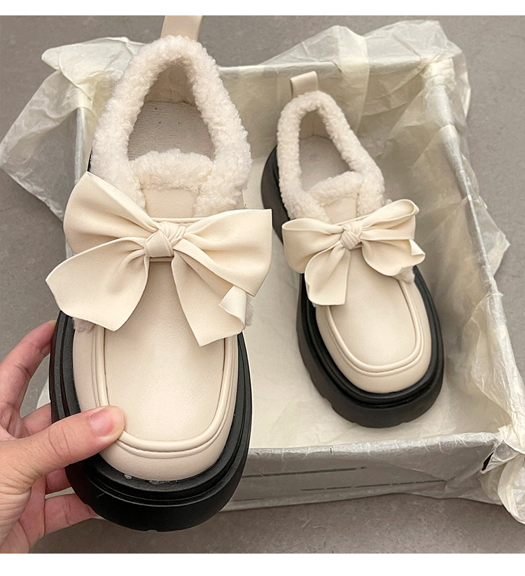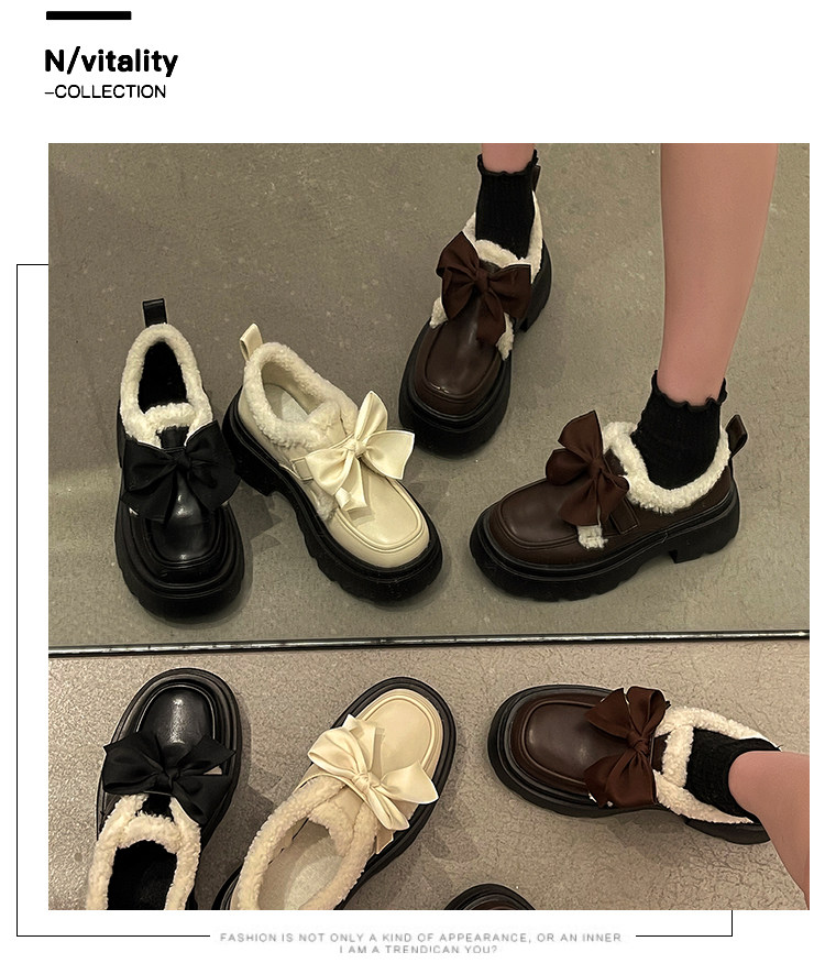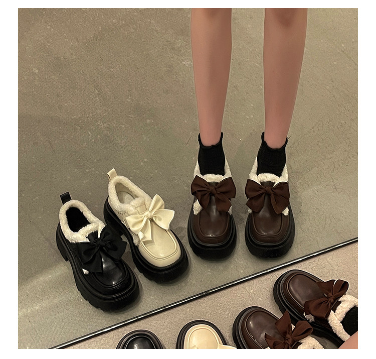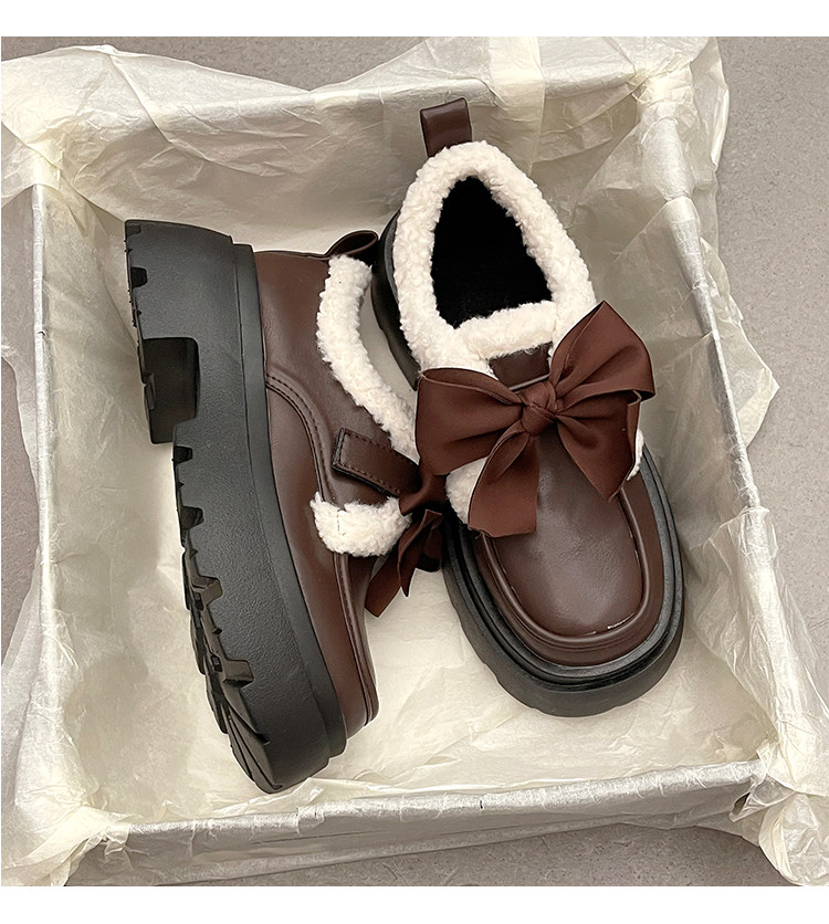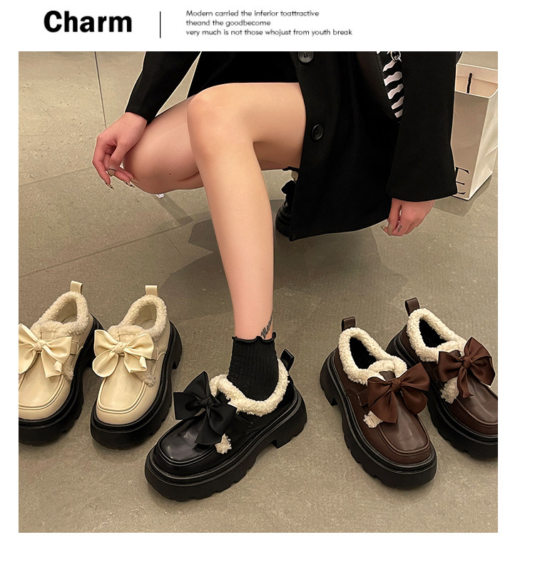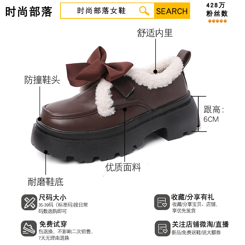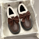 Модная флисовая демисезонная обувь с бантиком для кожаной обуви, демисезонные лоферы на платформе, коллекция 2022