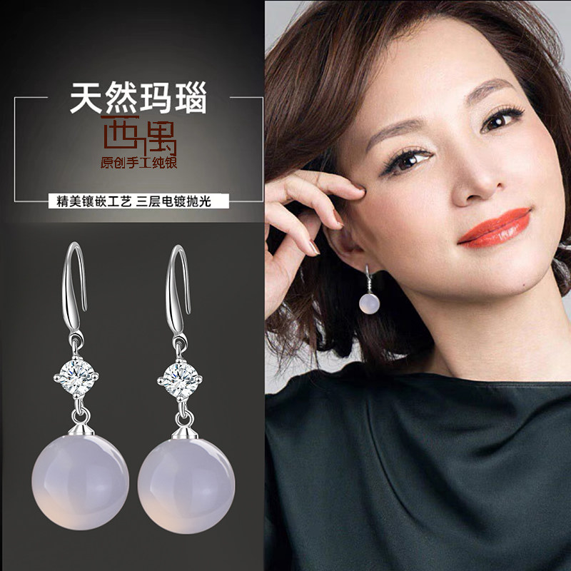 Агатовые ретро серьги, серебро 925 пробы, коллекция 2022, городской стиль, изысканный стиль, легкий роскошный стиль