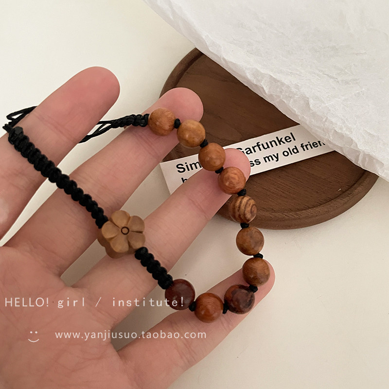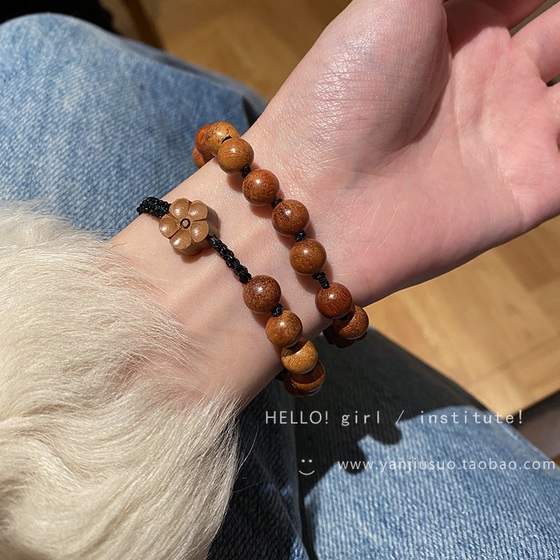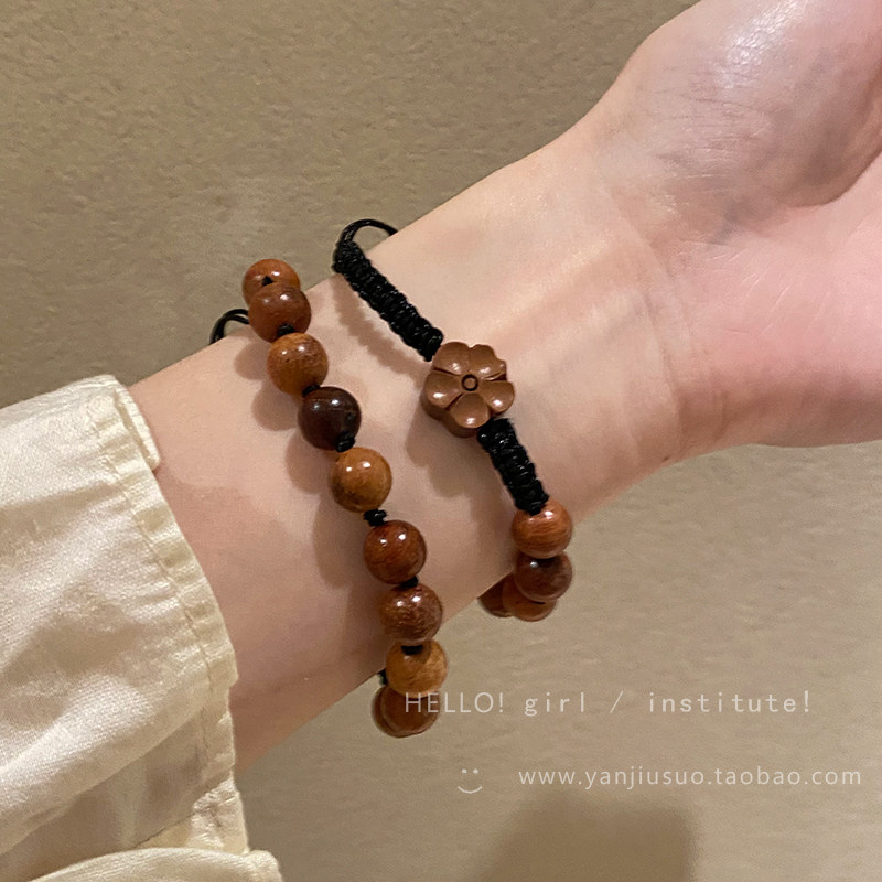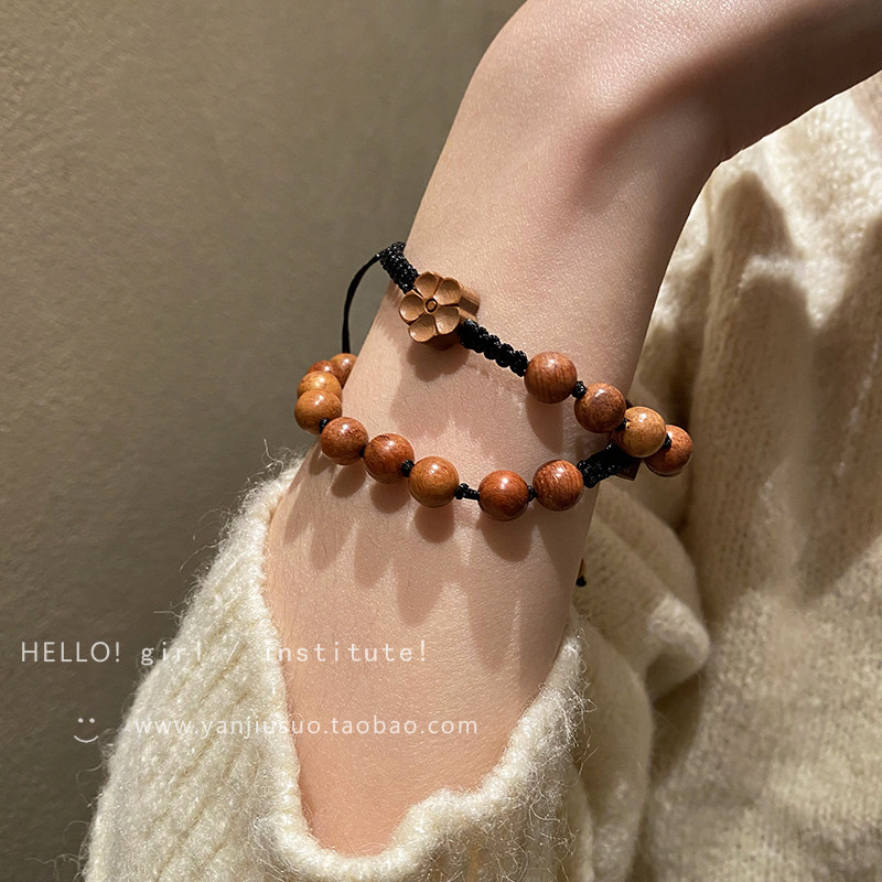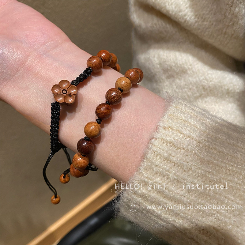 Ретро плетеный брендовый небольшой дизайнерский регулируемый браслет из сандалового дерева, в цветочек, китайский стиль