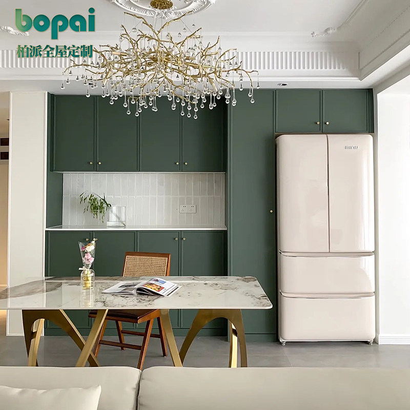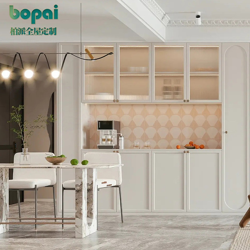 柏派全屋定制 Французский сплошной древесный шкаф интегрированный настенный кухня Американская легкая роскошная винная шкаф Европейский шкаф для хранения