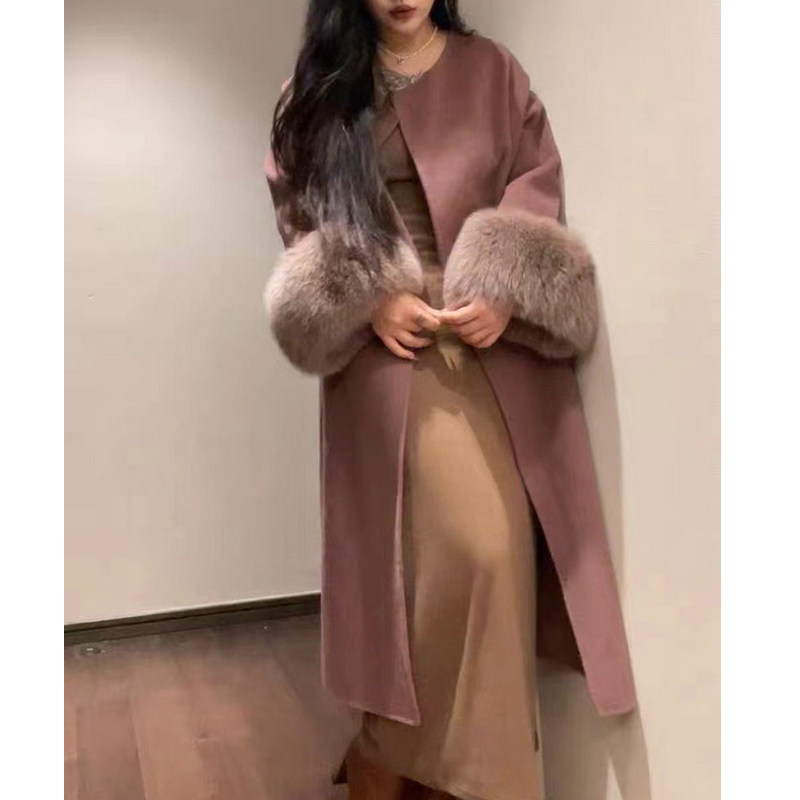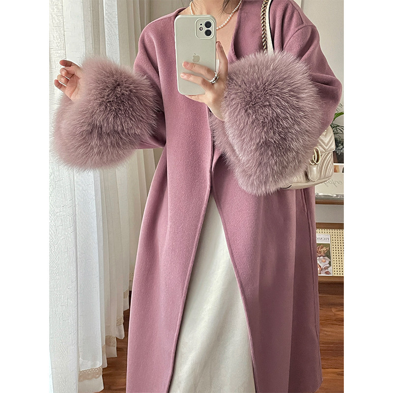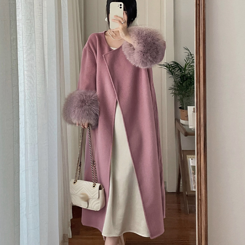 Большое двусторонное кашемировое зимнее длинное шерстяное шерстяное пальто
