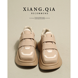 XQIA ~ Обувь действительно нежные, я не могу не похвастаться несколькими словами!Папочка обувь женская осень и зимняя квадратная голова волшебные наклейки