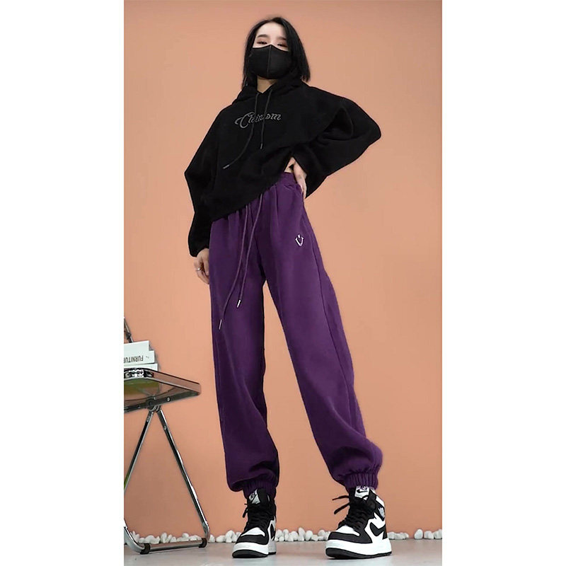 Сиреневые осенние спортивные штаны для отдыха, высокая талия, свободный прямой крой, популярно в интернете
