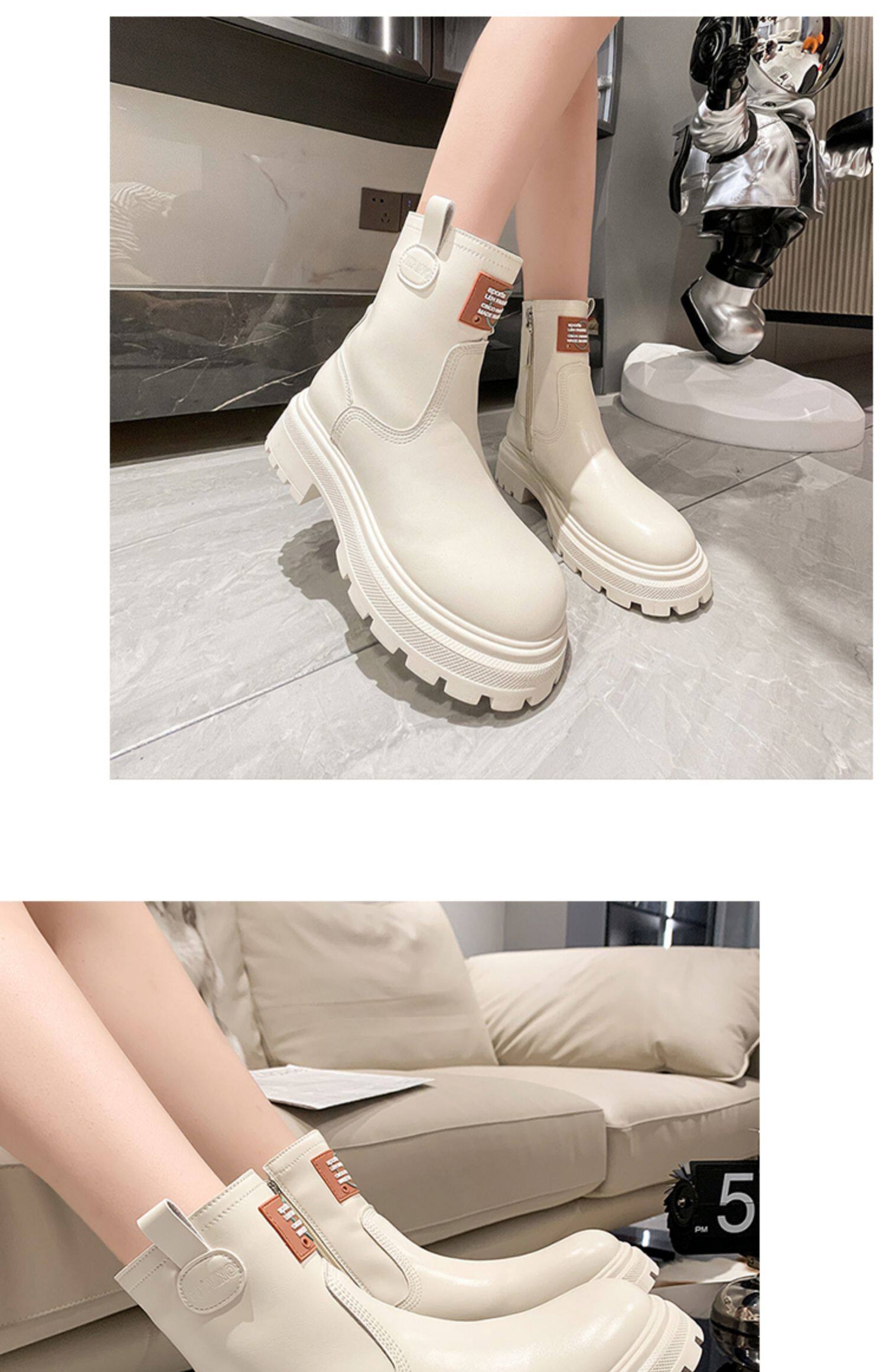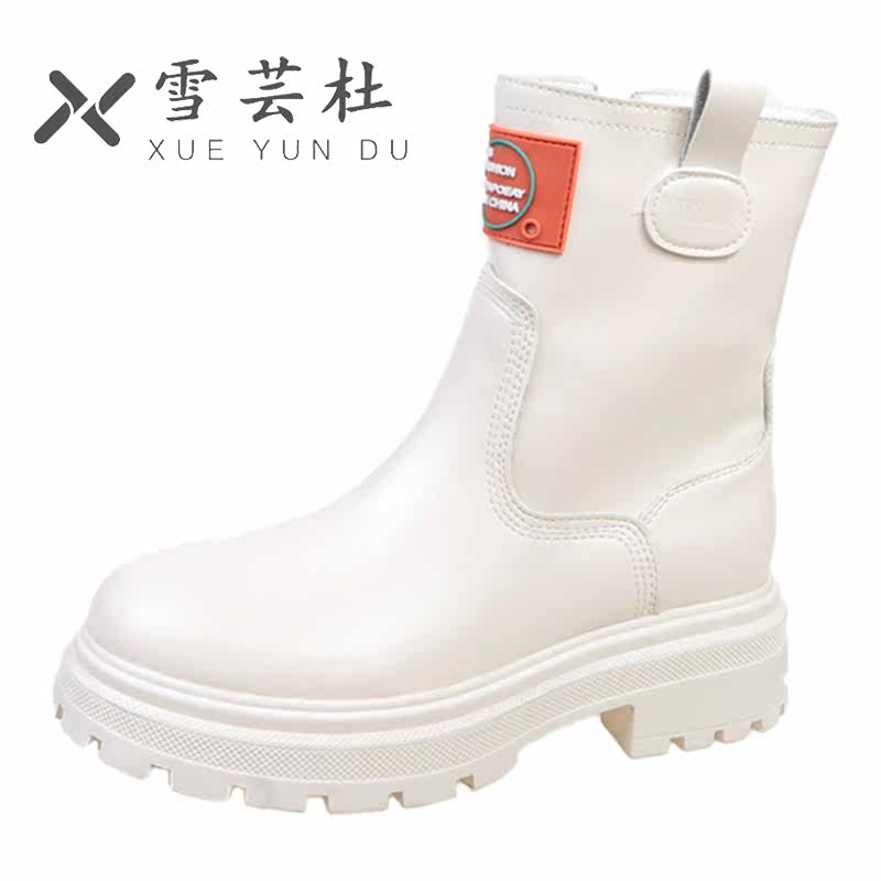 Martens, утепленные белые зимние короткие сапоги на платформе, средней длины