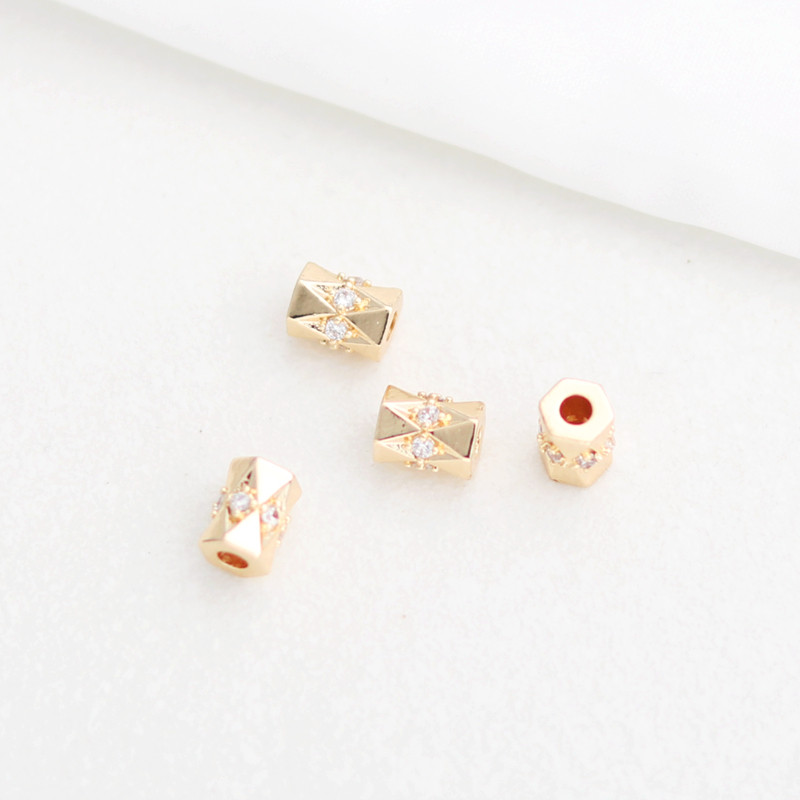 Бусины, инкрустация камня с цирконом, ожерелье и браслет ручной работы, аксессуары, 14 карат, золотой цвет, со сквозным отверстием, DIY