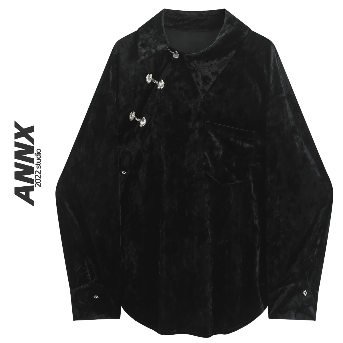 Черный лонгслив, бархатная рубашка, коллекция 2023, китайский стиль, свободный крой