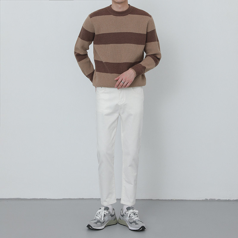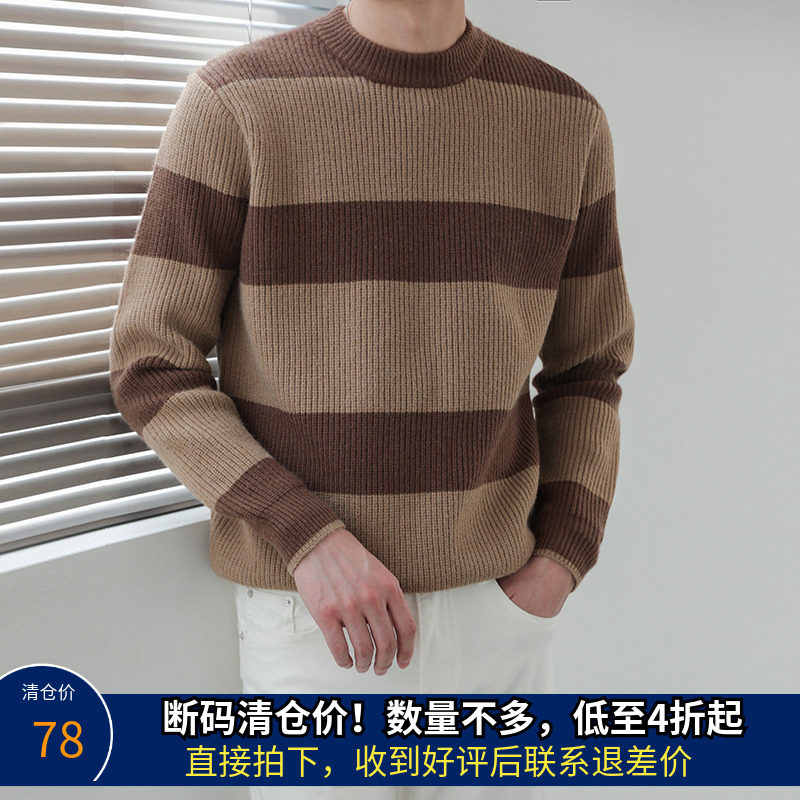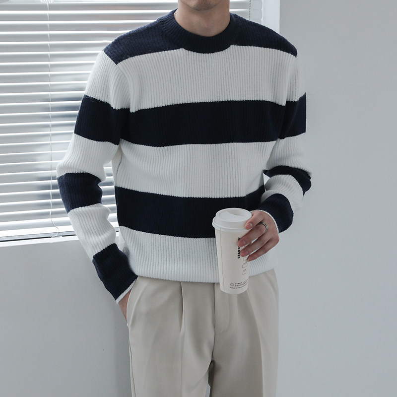 Мужской трикотажный демисезонный трендовый свитер с круглым воротником, в корейском стиле