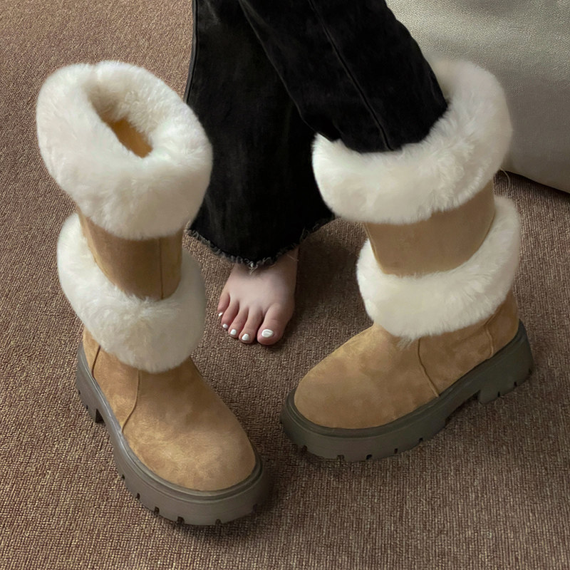 Утепленные удерживающие тепло нескользящие высокие сапоги на платформе, коллекция 2022, средней длины