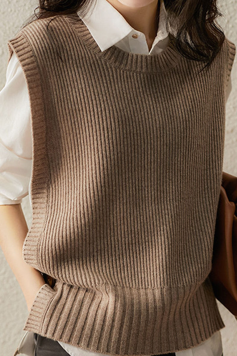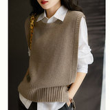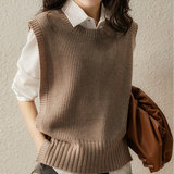 Жилет, осенний короткий шерстяной свитер для отдыха без рукавов, коллекция 2021