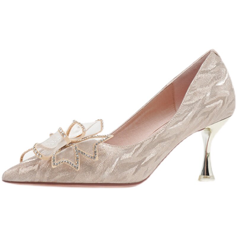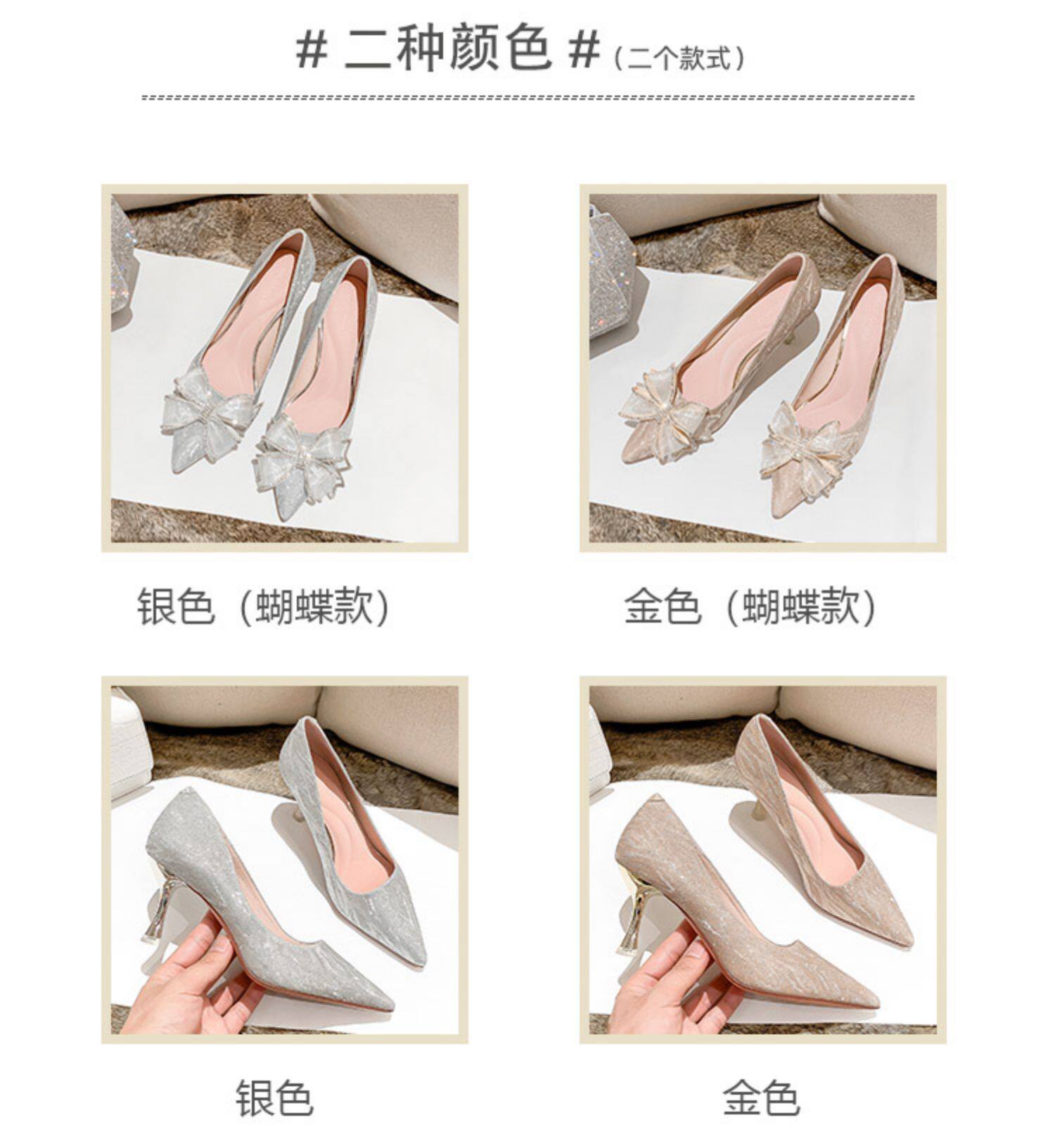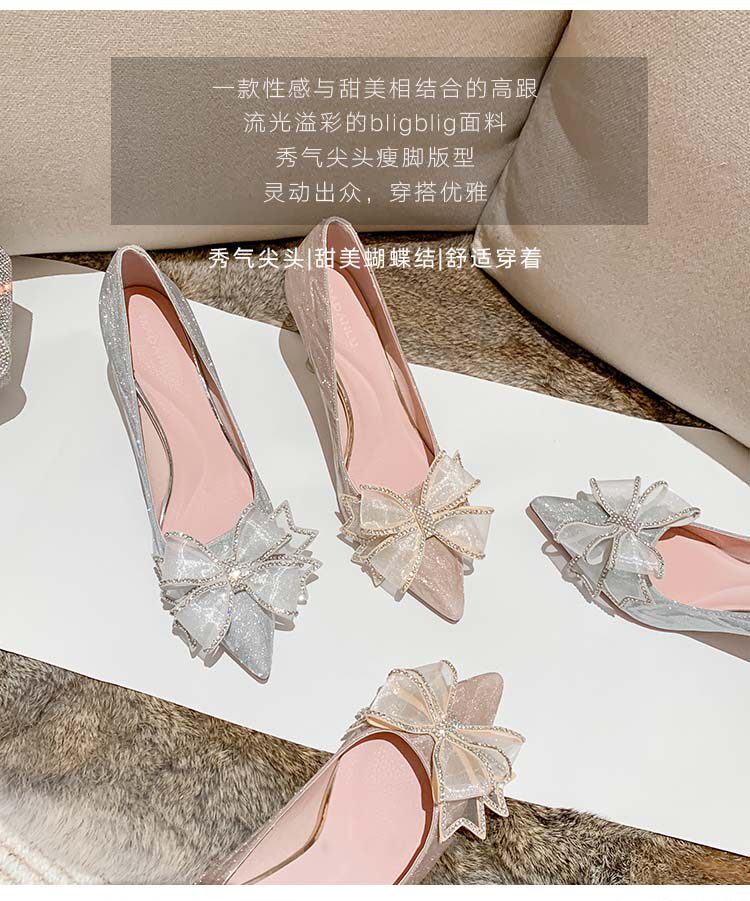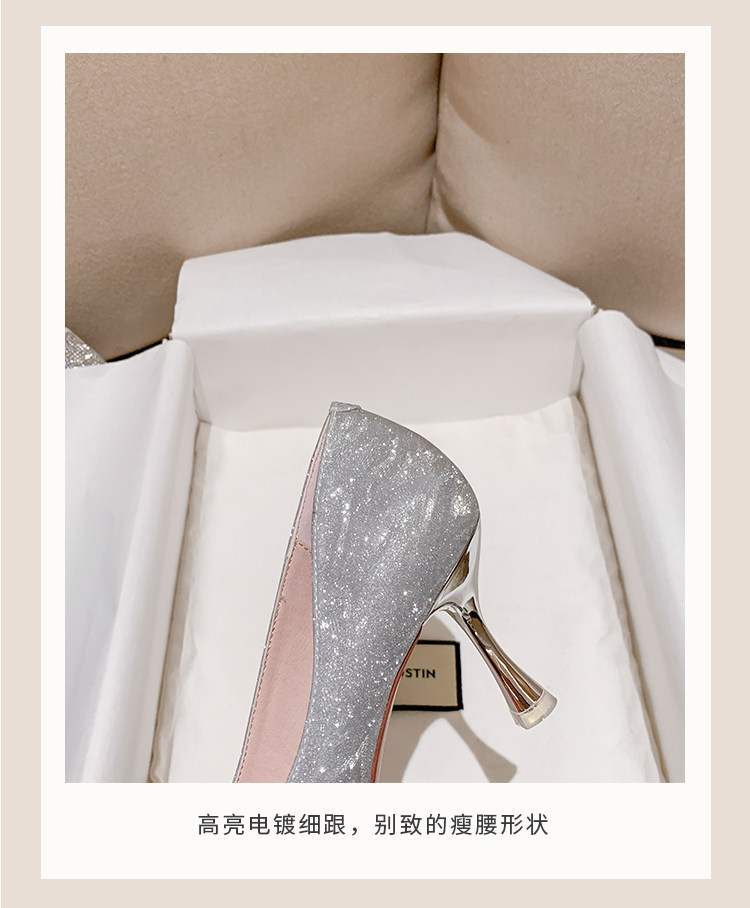 Серебряные весенние туфли на высоком каблуке на высоком каблуке, свадебные туфли, подходит для подростков, тренд сезона, для подружки невесты