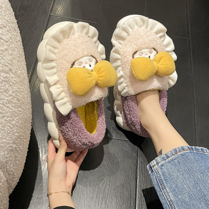 Тапочки с бантиком, зимняя коралловая комфортная милая обувь на платформе для принцессы