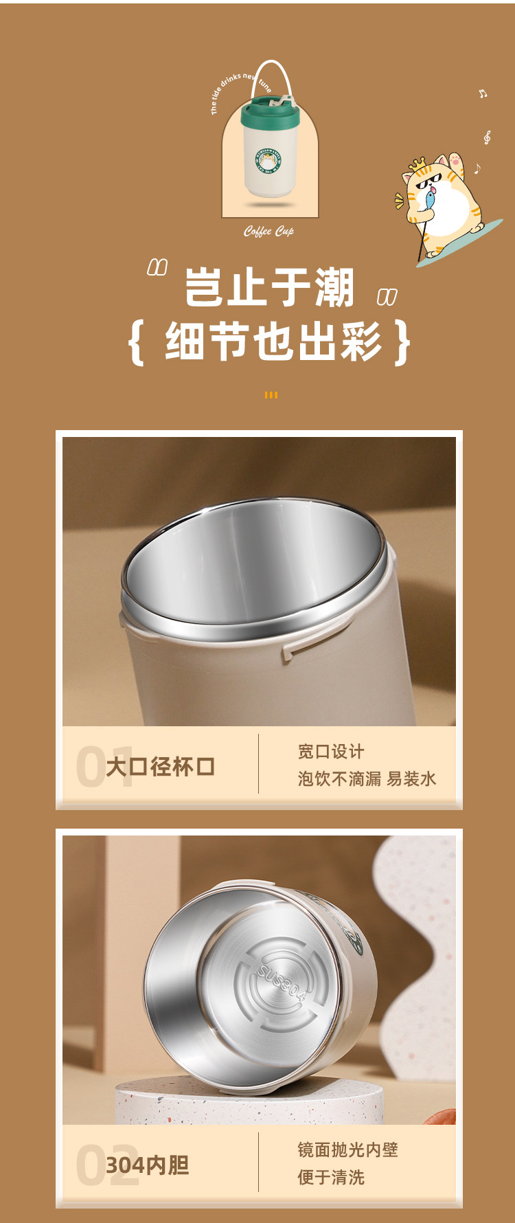 Кофейная чашка 304 Стальница из нержавеющей стали принесите чашку чашки детского офиса.