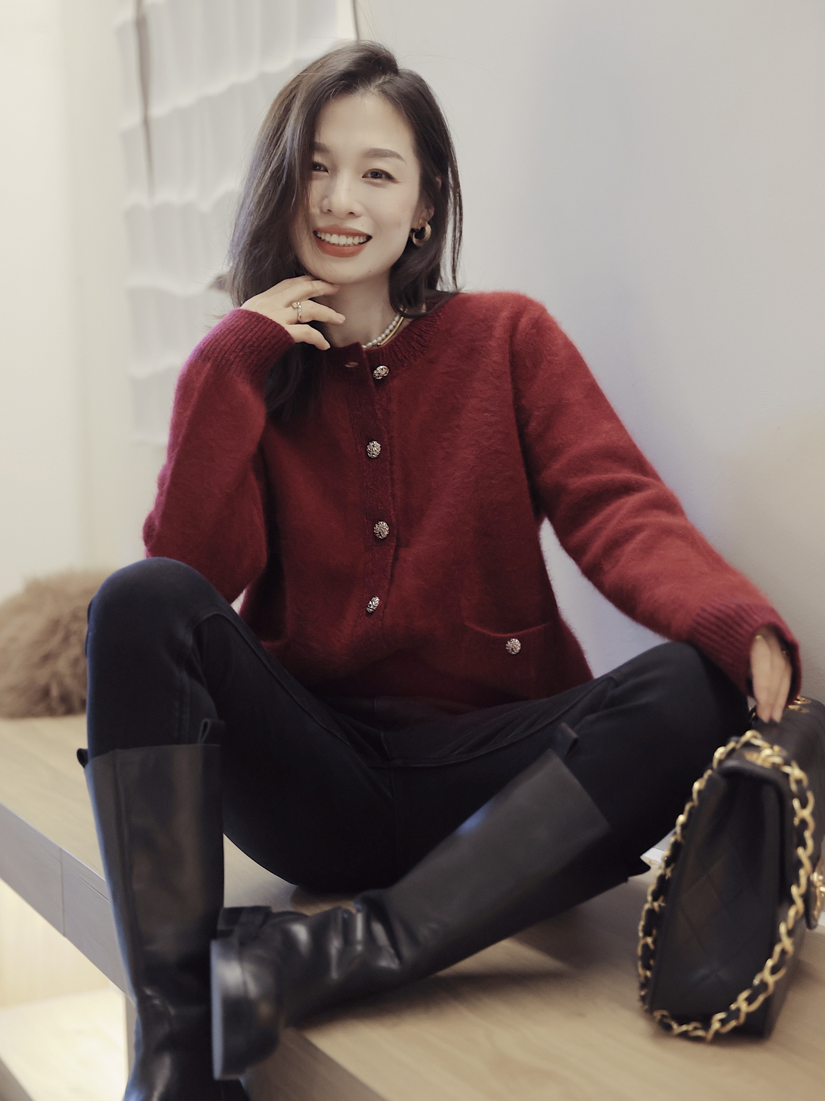 Spot Flash 【Conseni еновый бархат】 100 еновый еновый бархатный зимний вязаный свитер кардиган Z1928