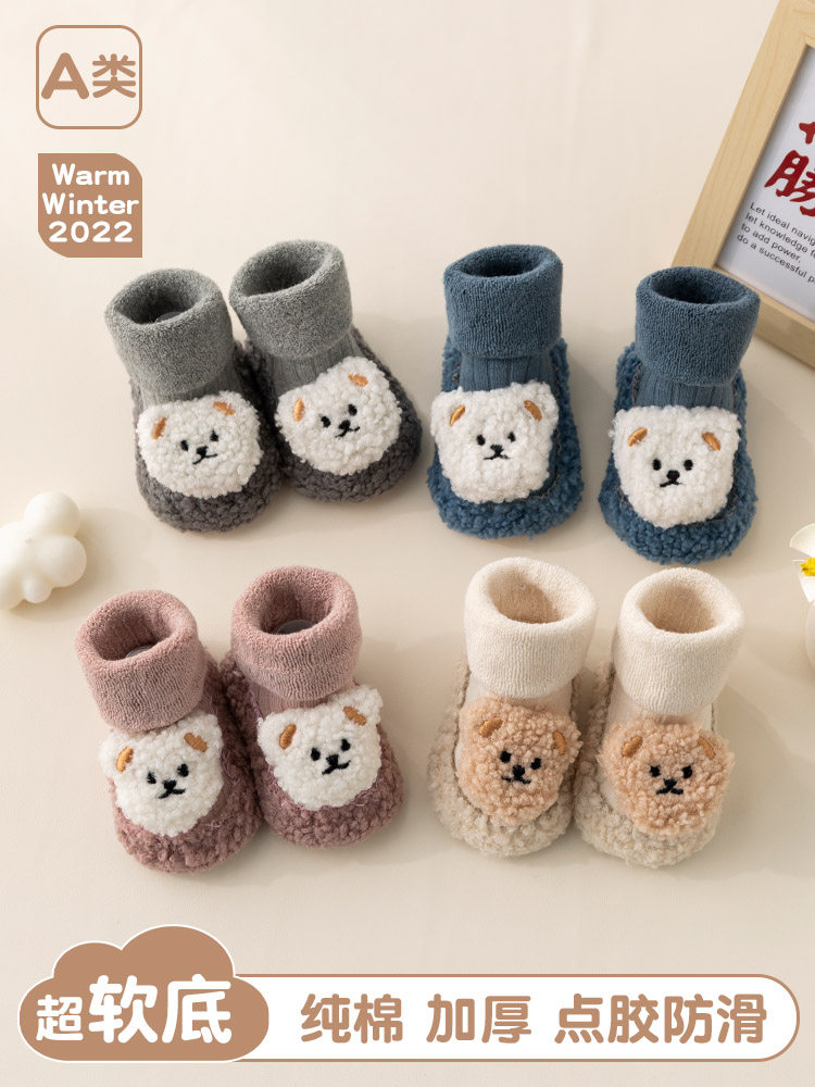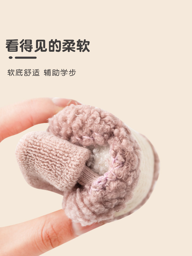 Детские туфли для малышей, осень и зима плюс бархат, утолщенная мягкая подошва, теплые годовалые носки для мужчин и женщин, новые школьники, нескользящая, несъемная обувь.