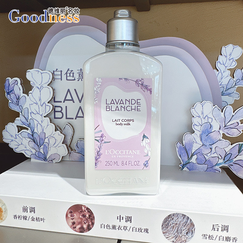 L'occitane, белое лавандовое парфюмированное молочко для тела, увлажняющий дезодорант, крем для тела, 250 мл